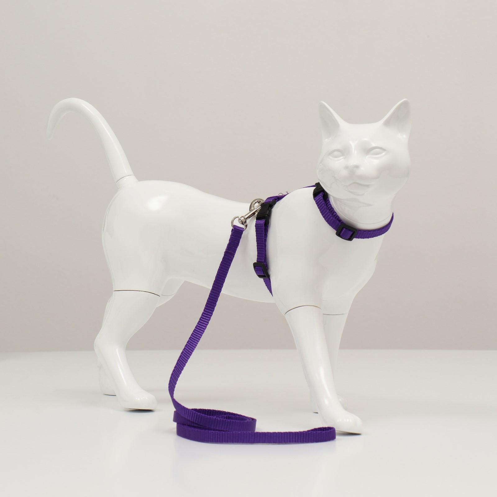 Комплект для кошек, ширина 1 см, ОШ 16,5-27 см, ОГ 21-35 см, поводок 120 см, фиолетовый