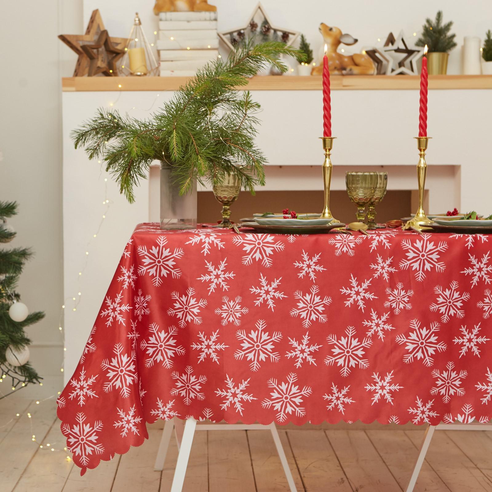 Скатерть новогодняя Доляна "Снежинки" 145*260 см, 100% п/э