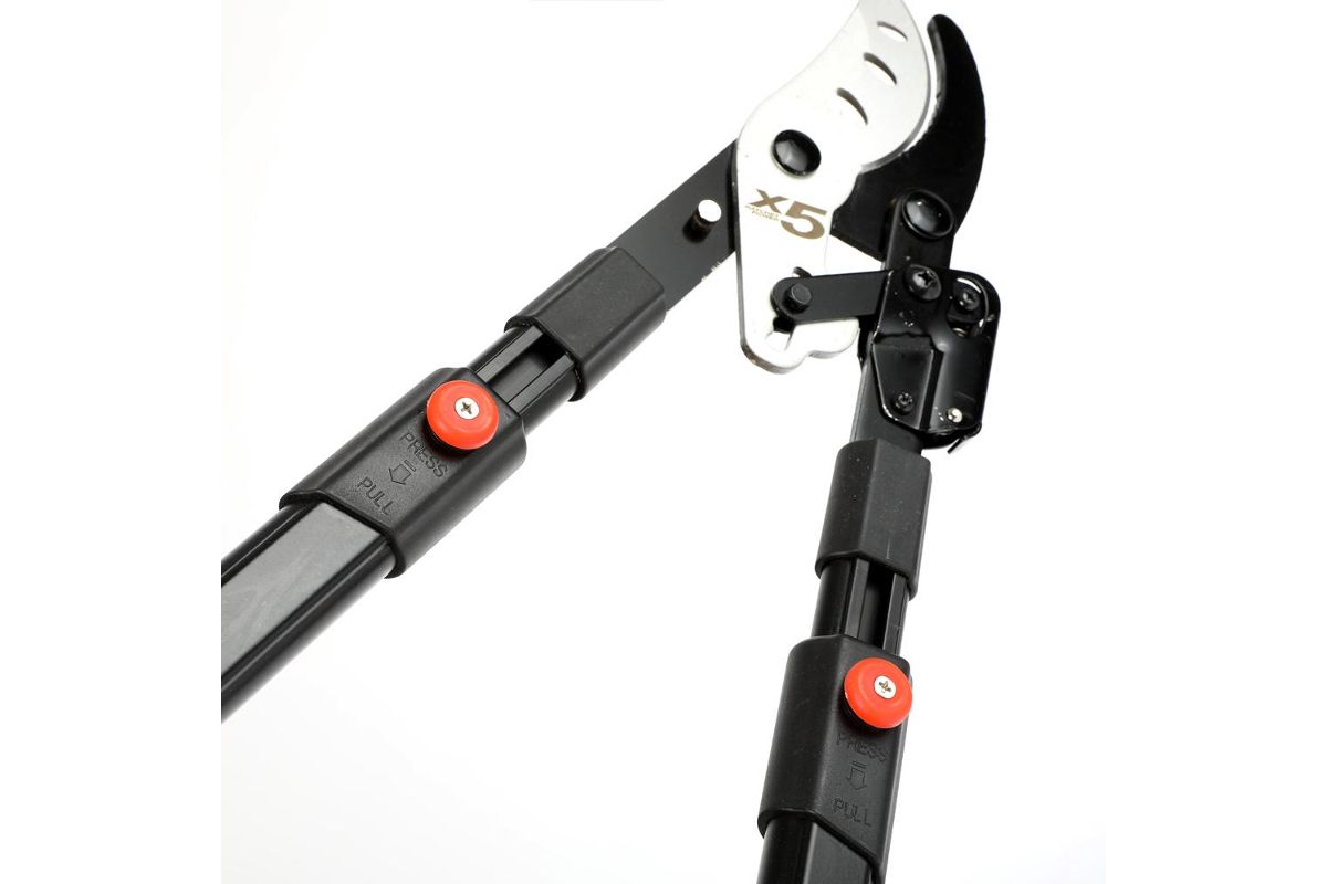 - Храповый рычажный механизм облегчает работу с толстыми ветками;
