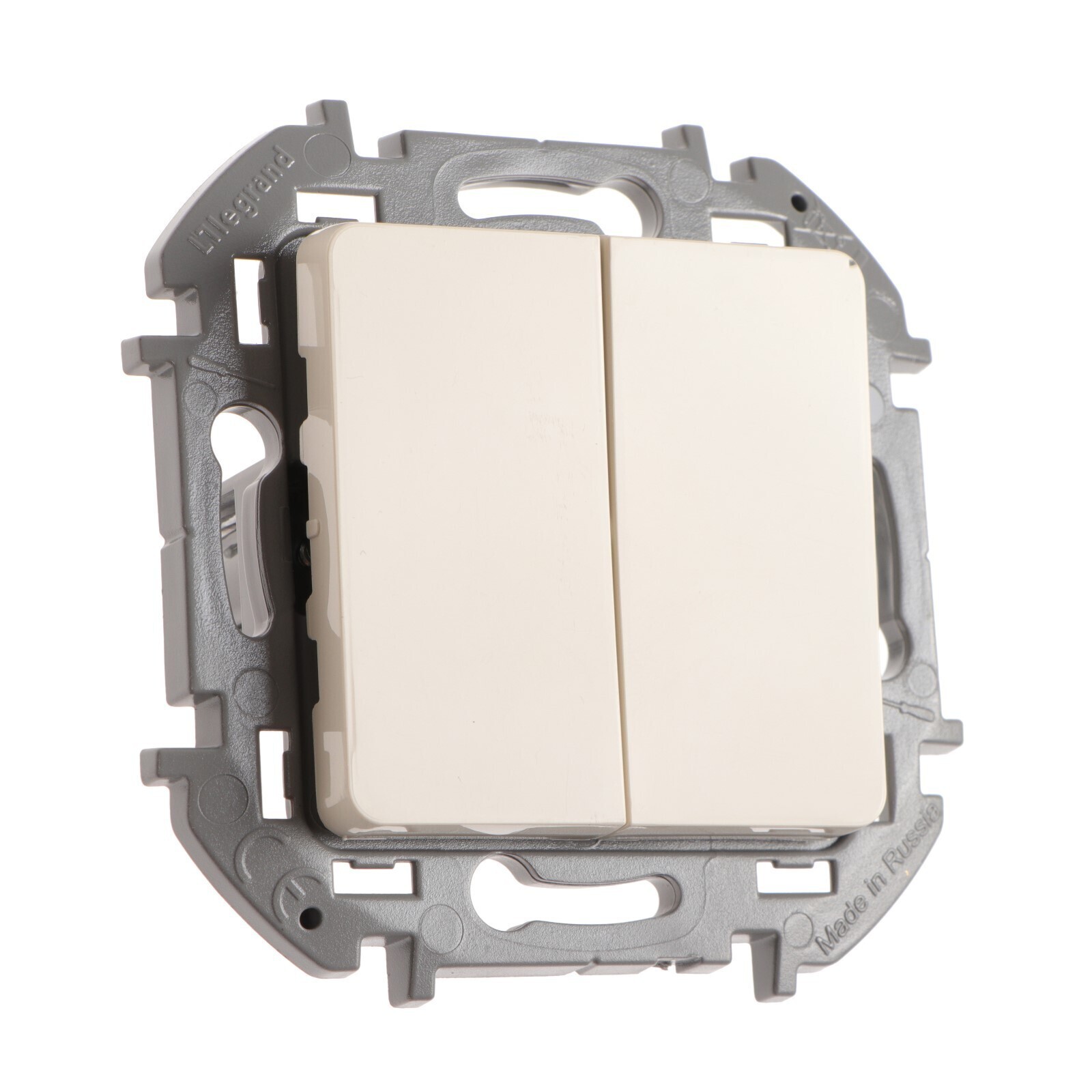 Выключатель двухклавишный Legrand INSPIRIA, 10 AX, 250 В, Слоновая кость