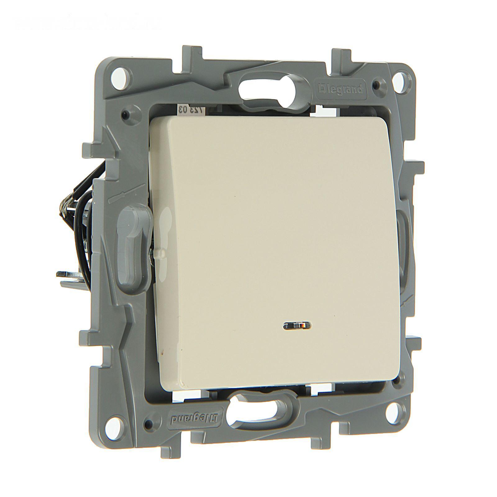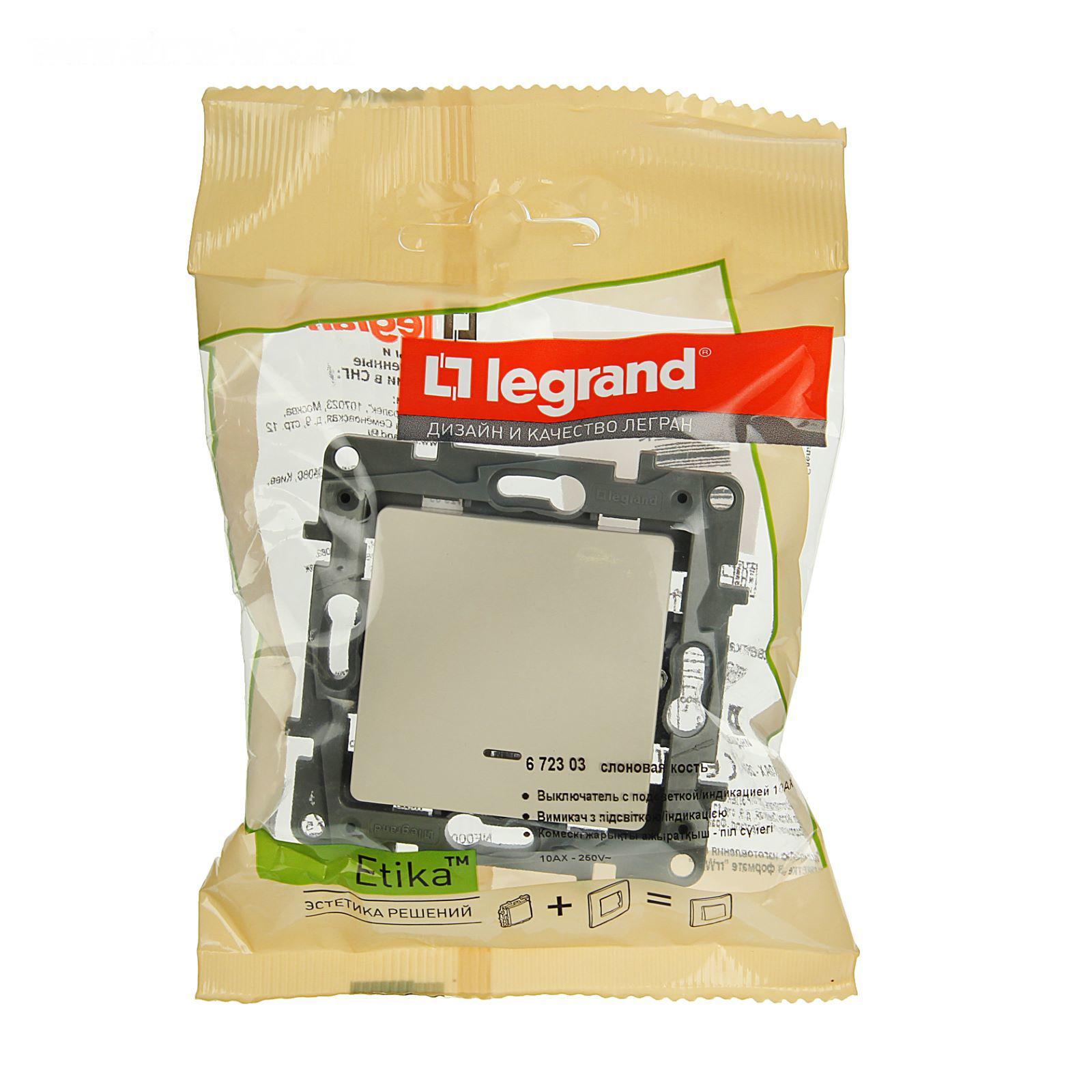 Выключатель Legrand Etika 672303, 10 А, 1 клавиша, скрытый, с подсветкой, слоновая кость