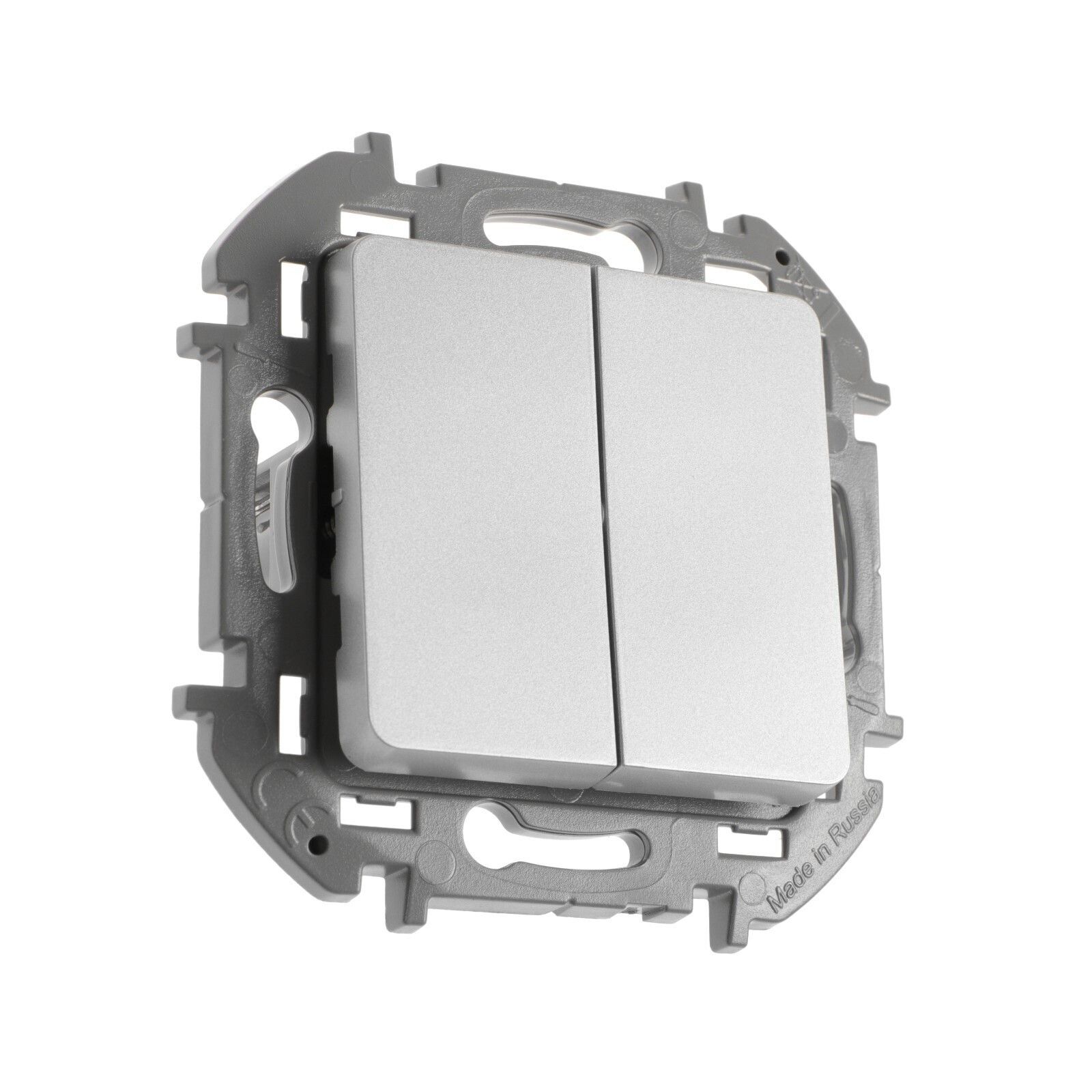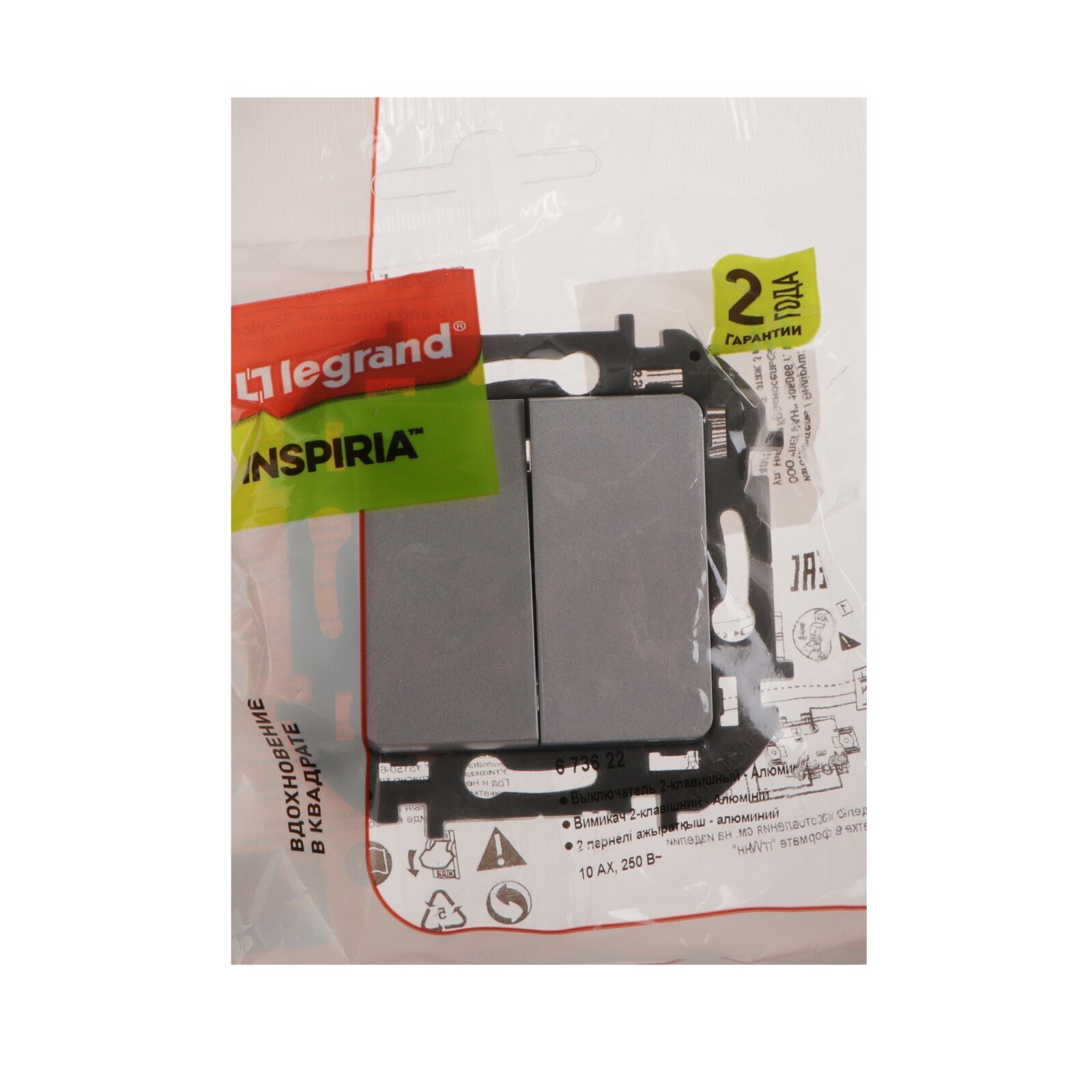 Выключатель двухклавишный Legrand INSPIRIA, 10 AX, 250 В, Алюминий