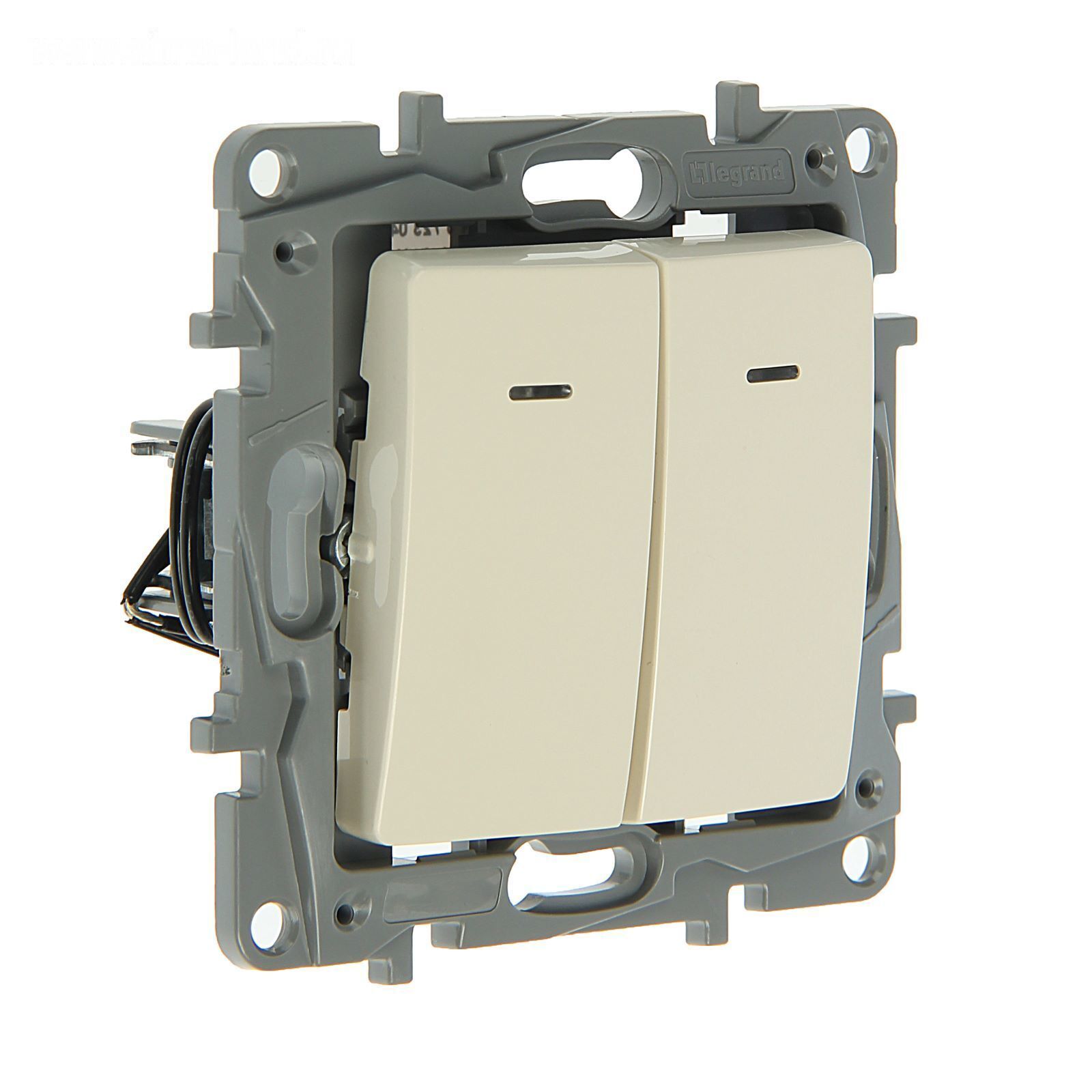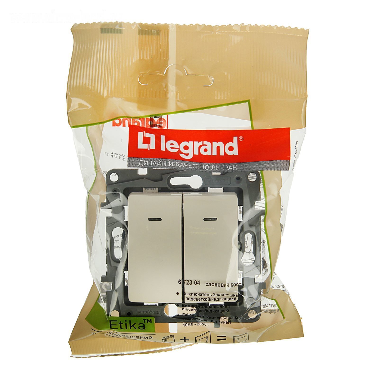 Выключатель Legrand Etika 672304, 10 А, 2 клавиши, скрытый, с подсветкой, слоновая кость