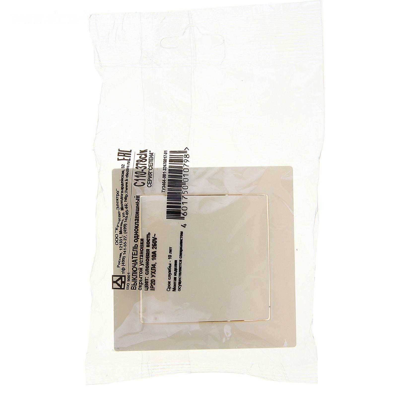 Выключатель "Кунцево" Селена 8140, 10 А, 250 В, 1 клавиша, скрытый, цвет слоновая кость