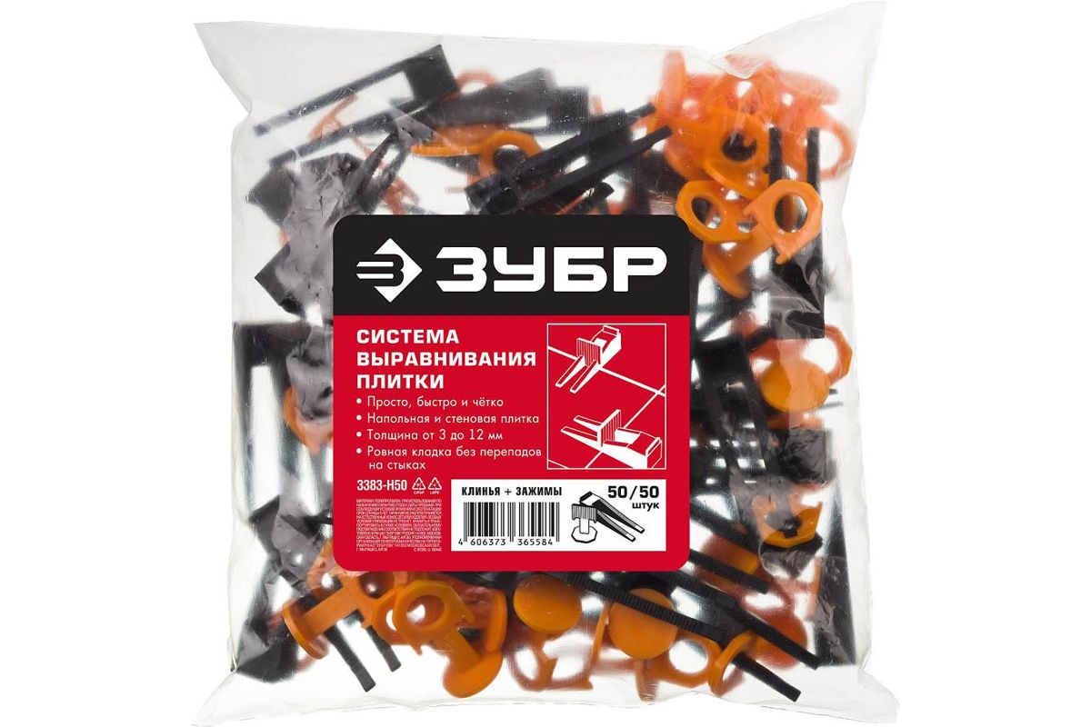 Система выравнивания плитки ЗУБР СВП 3383-H50 50+50шт (клин + зажим), в пакете