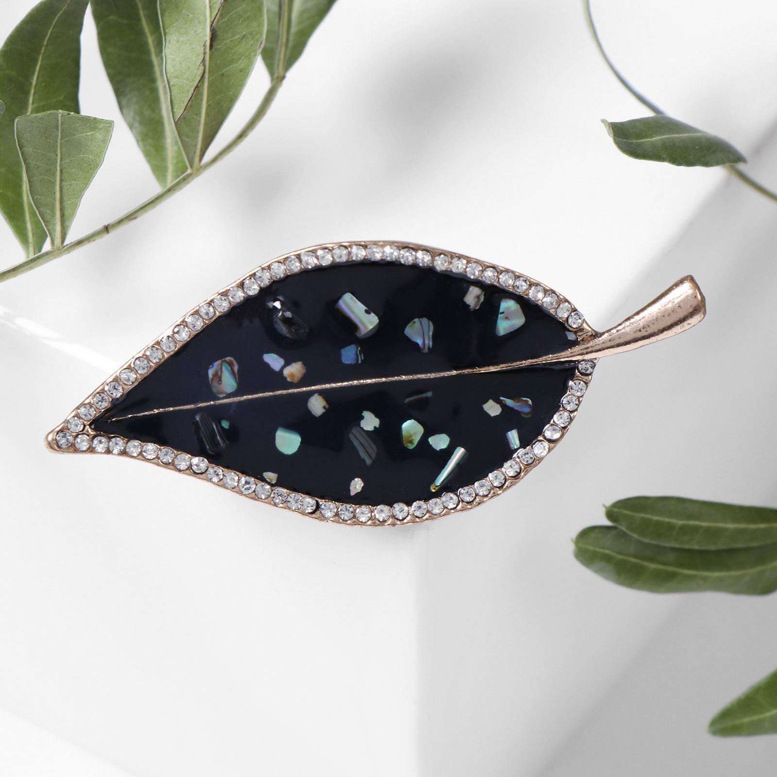 Брошь "Лист" с ракушкой, цвет чёрный в чернёном кофейном золоте