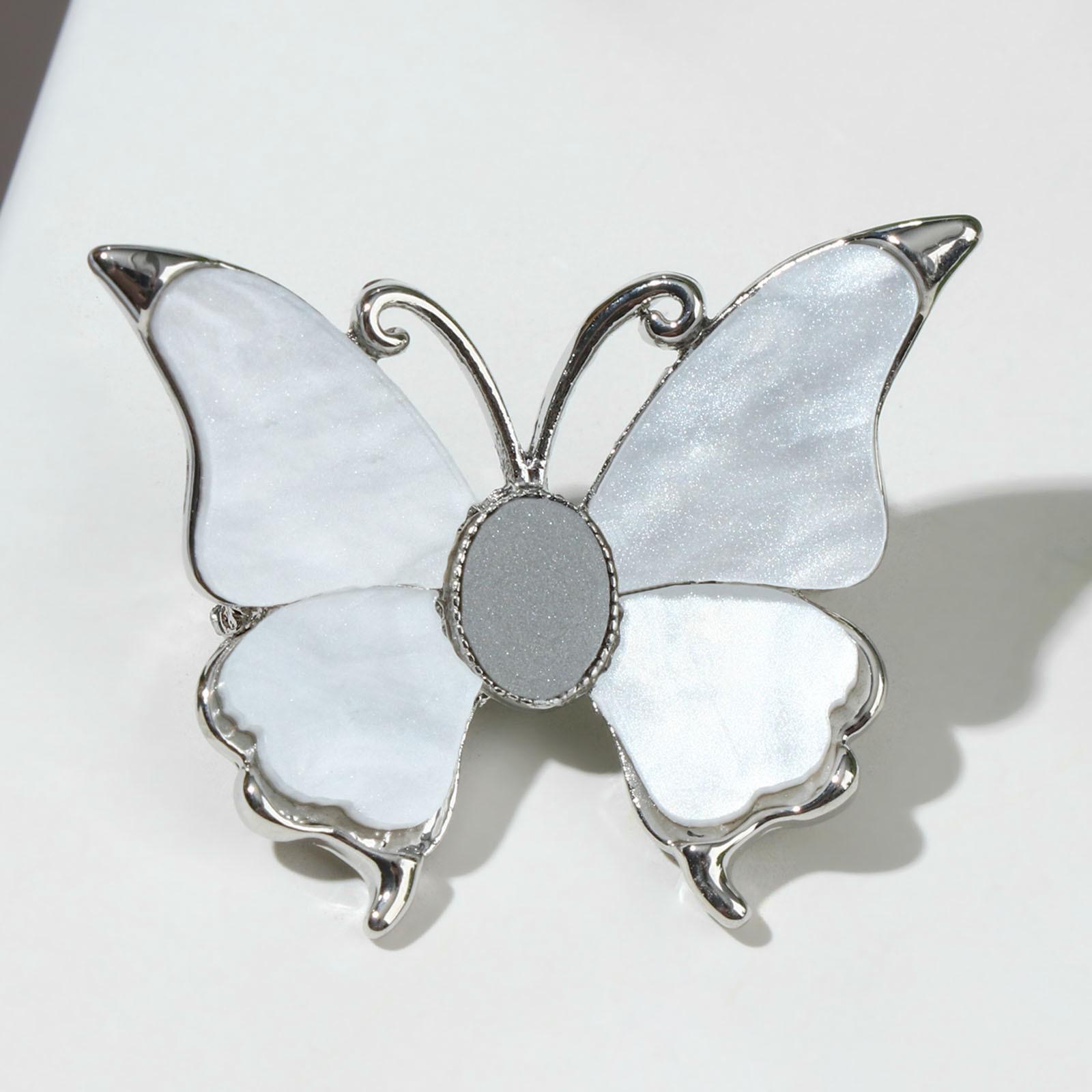 Брошь "Бабочка" минимал, цвет белый в серебре
