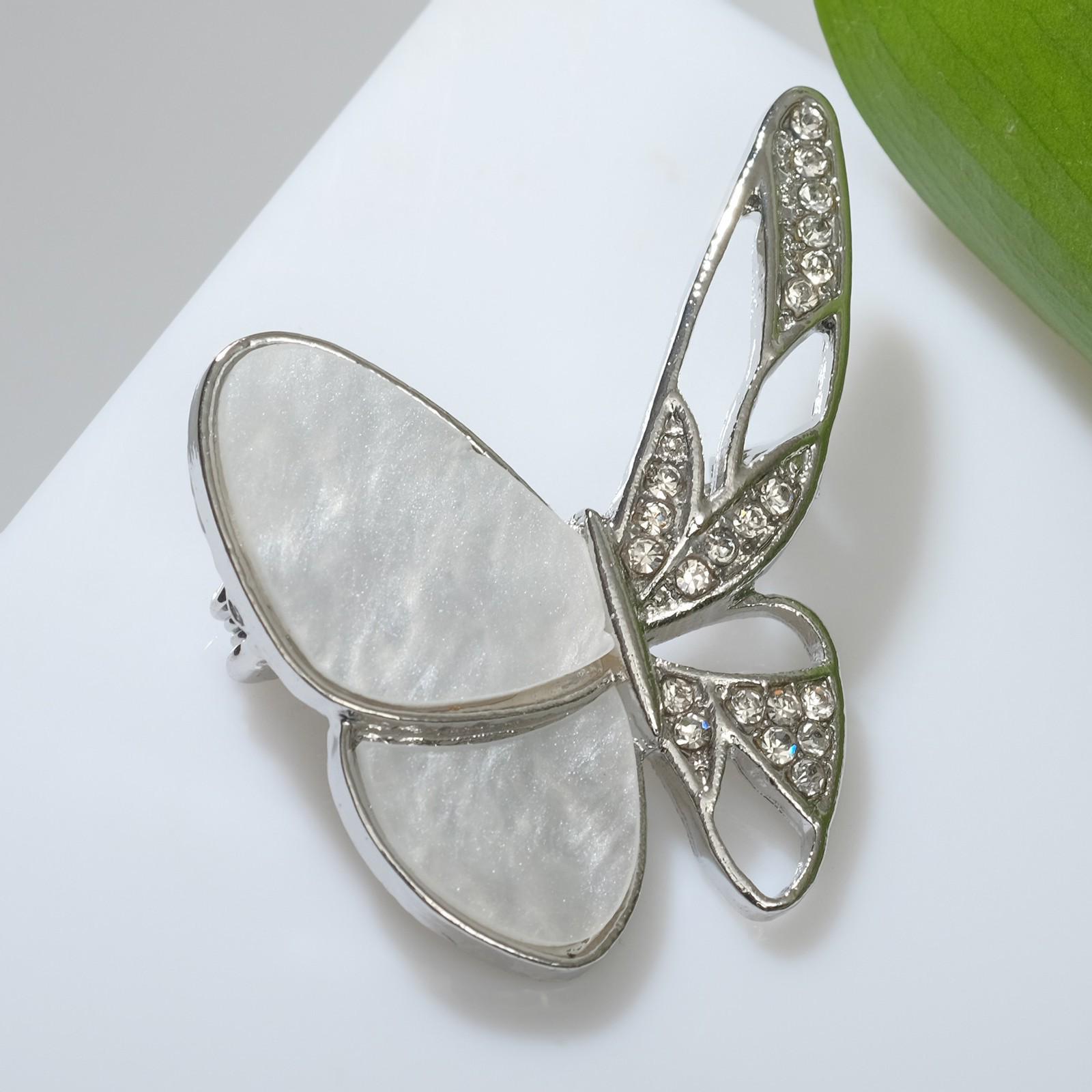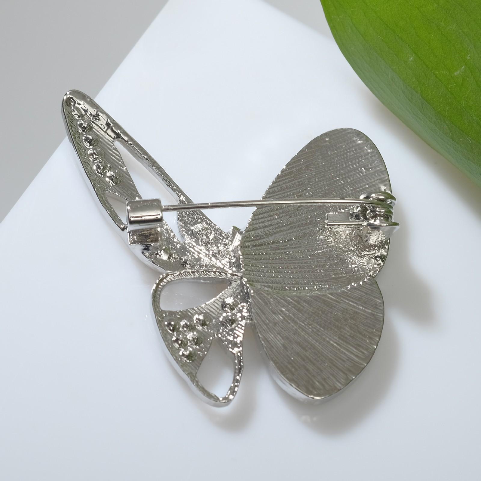 Брошь "Бабочка" ассиметрия, цвет белый в серебре