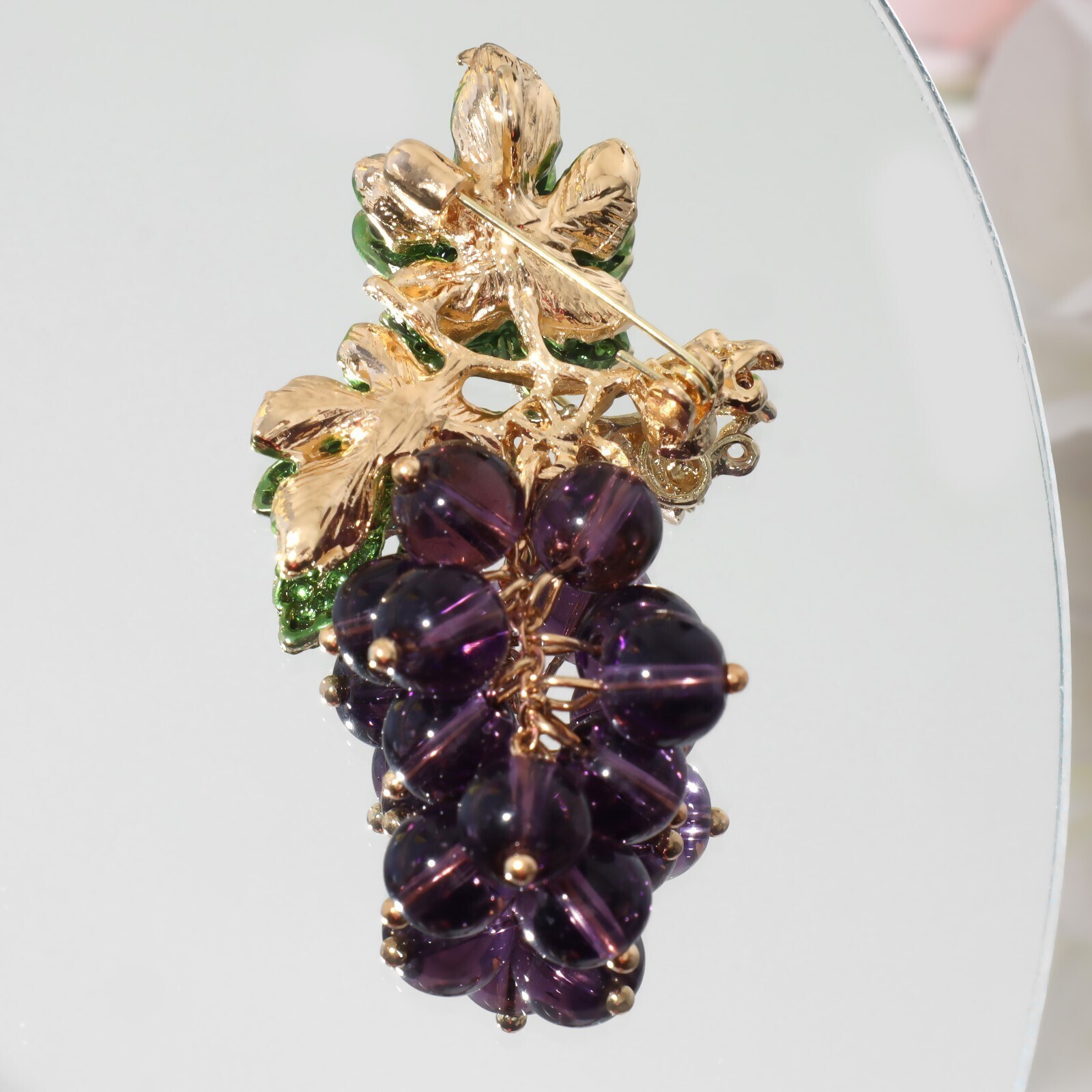 Брошь "Виноград" кисть, цвет фиолетово-зелёный в золоте
