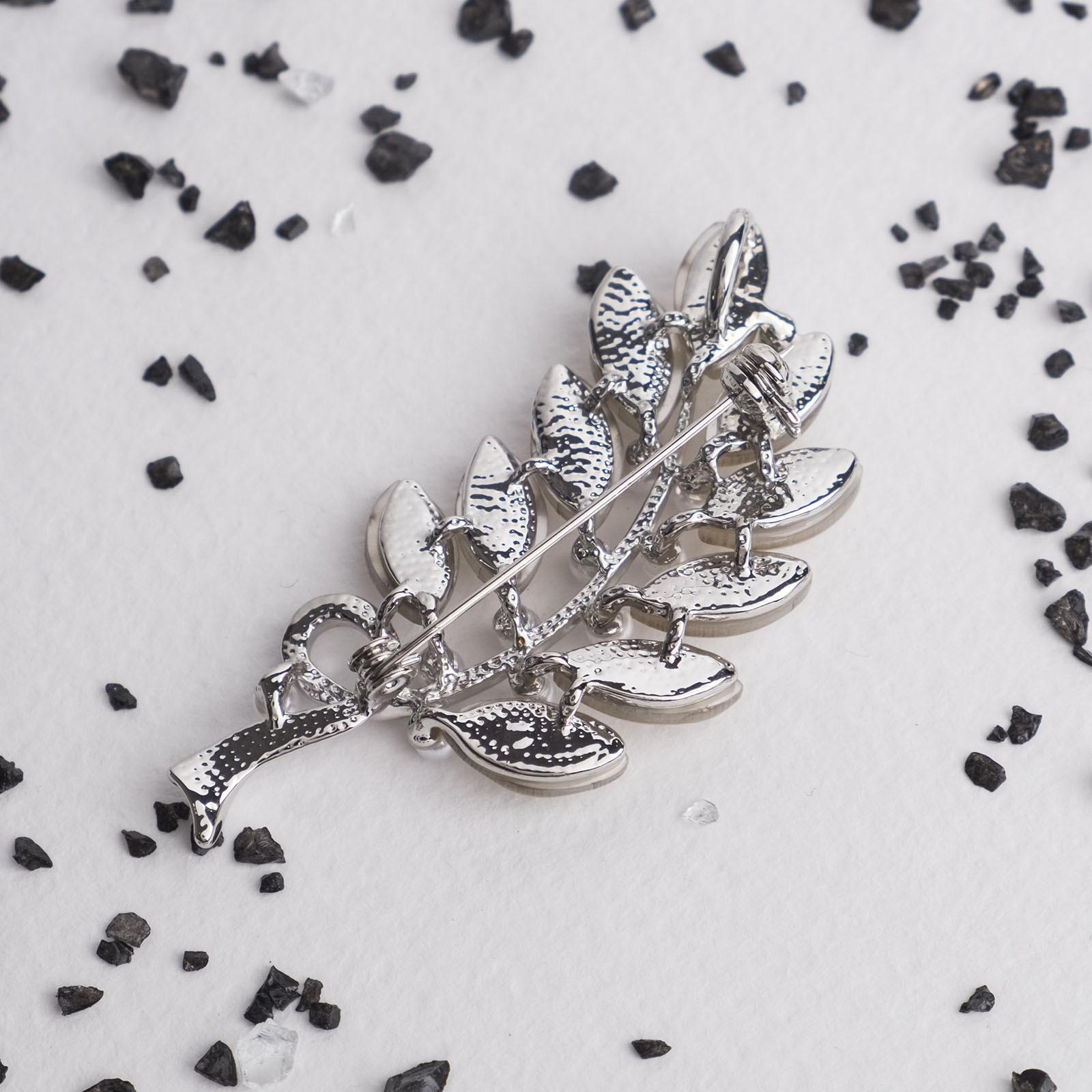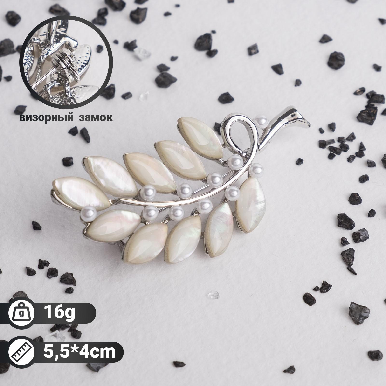 Брошь "Перламутр" веточка с жемчугом,цвет белый в серебре