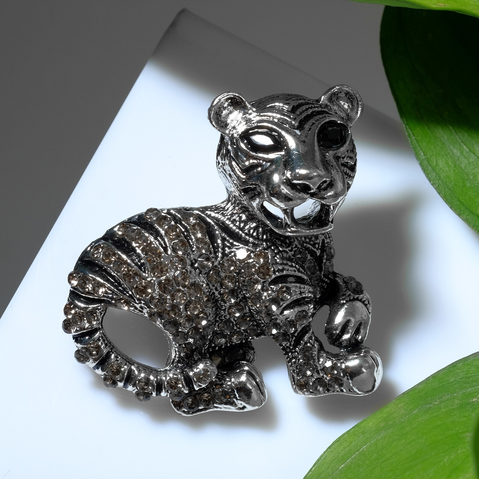 Брошь "Тигр" стоящий, цвет белый в серебре