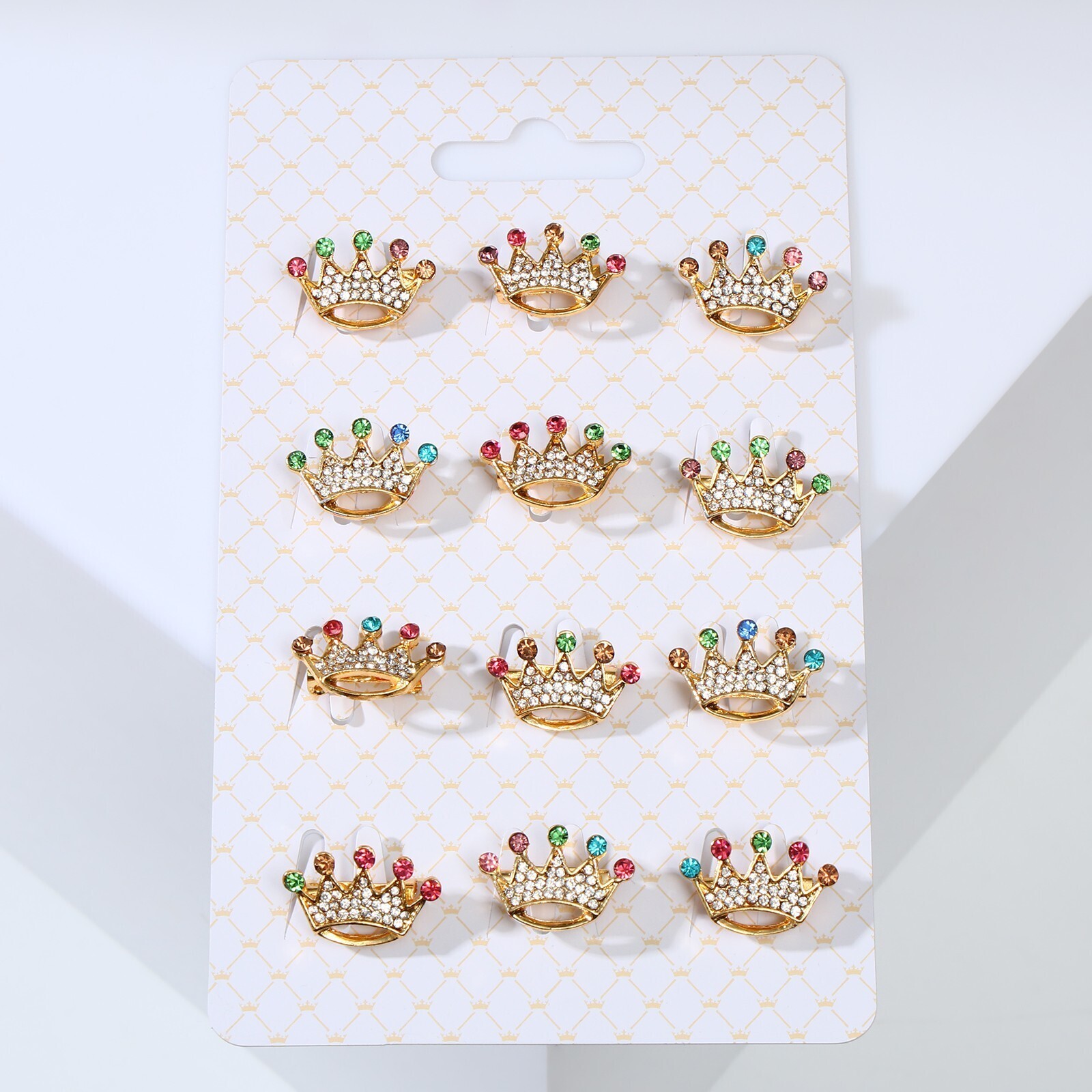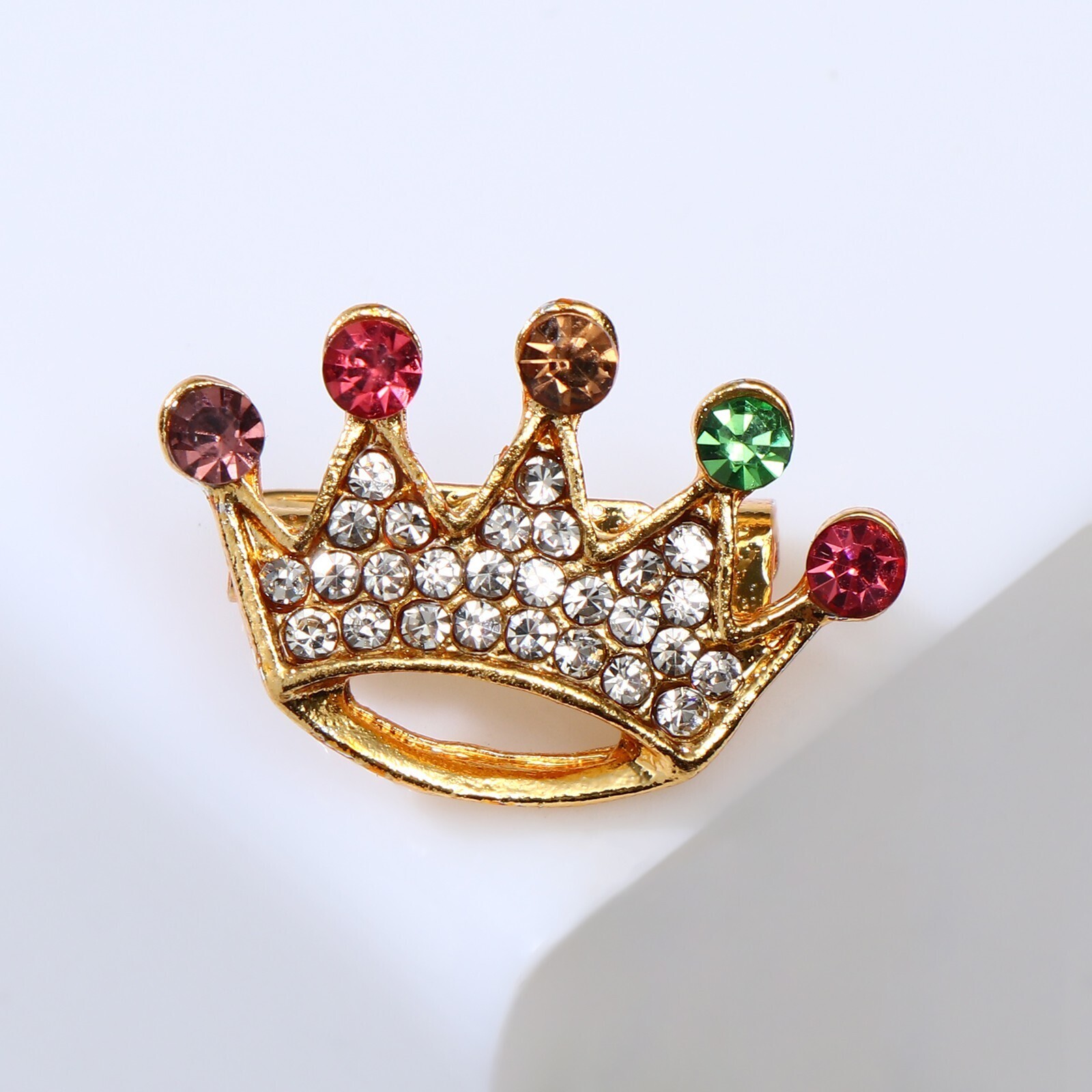 Брошь "Корона" радужная, цветная в жёлтом золоте (неделимая фас. 12шт, цена за шт)