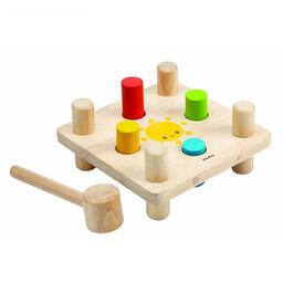 Детская стучалка развивает мелкую моторику рук, координацию движений и целеустремлённость. Суть игры заключается в следующем: ребёнку необходимо забить молоточком 4 гвоздика цилиндрической формы, после чего можно перевернуть изделие и начать заново.