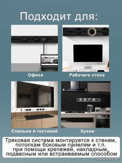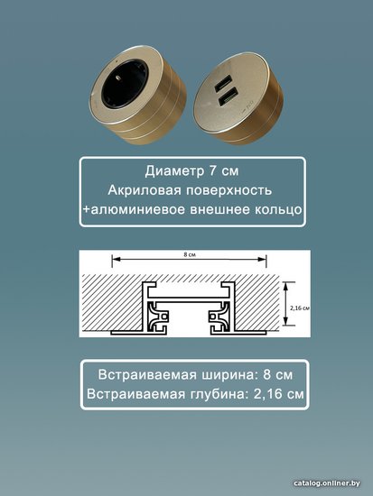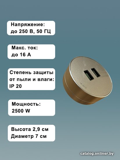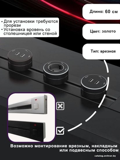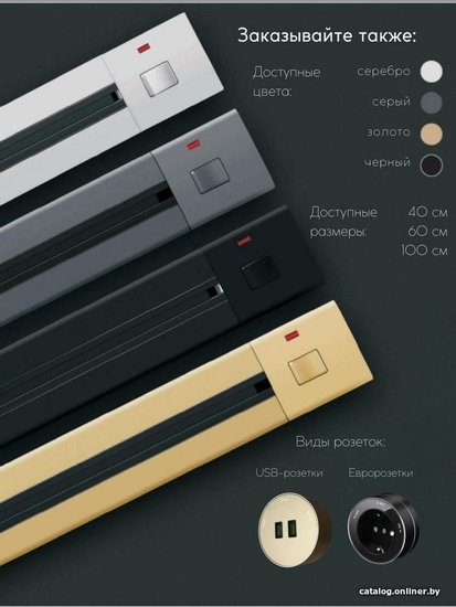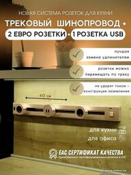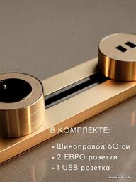 шинопровод 60 см +2 розетки +1 USB (золотистый)