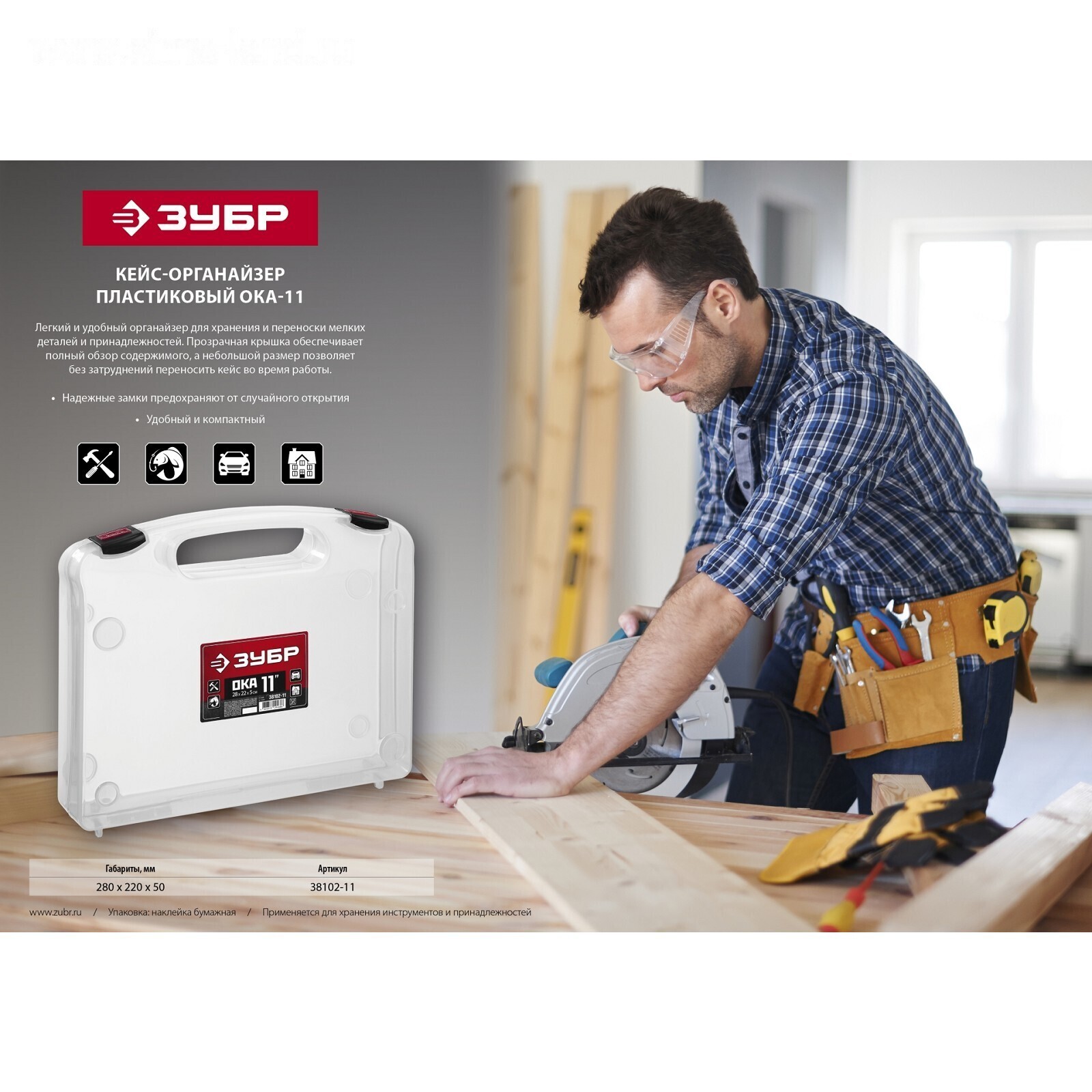 Кейс-органайзер ЗУБР 38102-11, "ОКА-11", 280 х 220 х 50 мм, пластиковый
