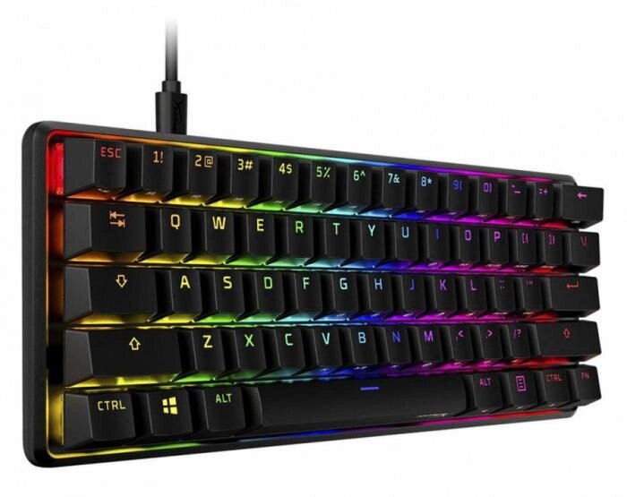 Клавиатура HYPERX Alloy Origins 60, USB, без русского алфавита, с русскими клавишами в комплекте черный [4p5n4aa#aba]