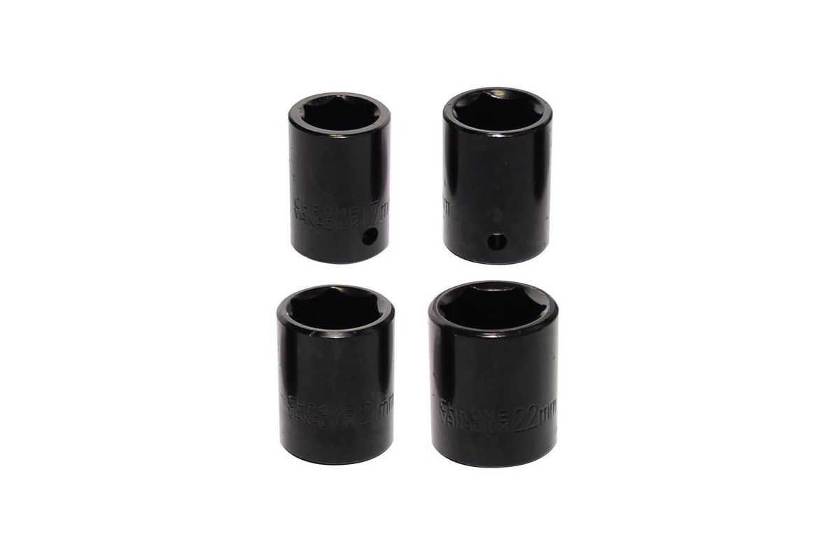 - В комплект ударного гайковерта входят четыре торцевых головок размеров (17, 19, 21 и 22 мм).