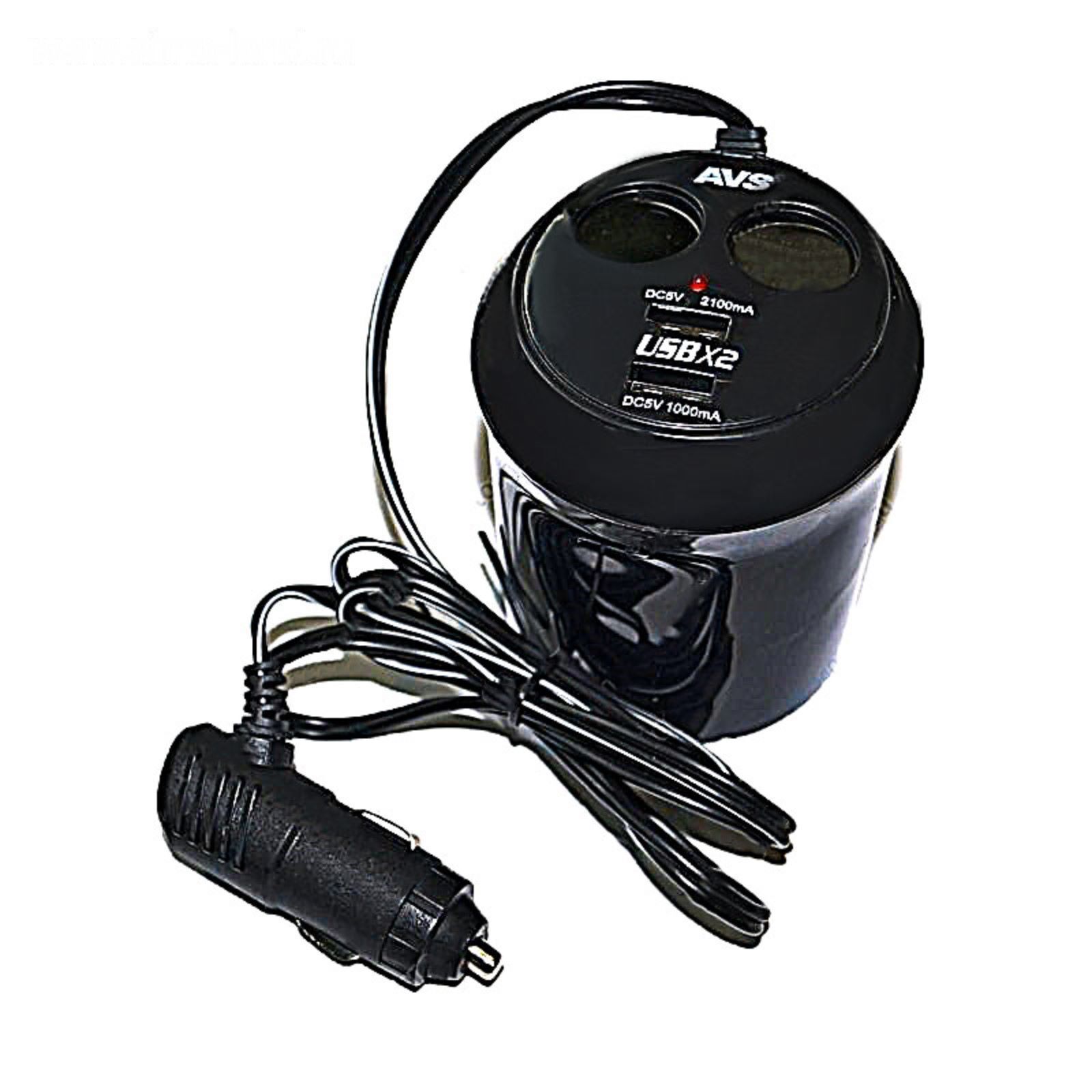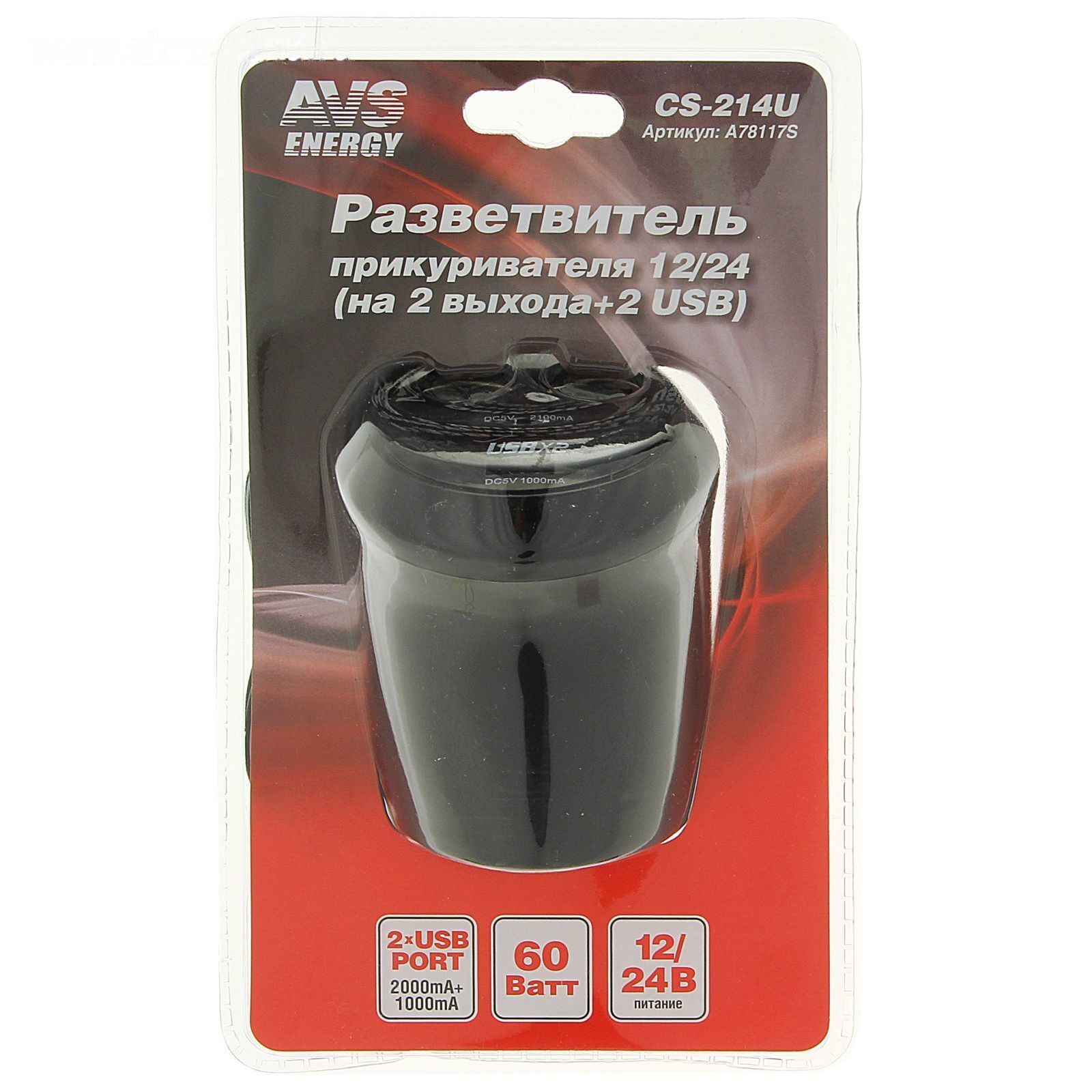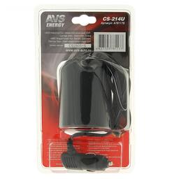 Разветвитель прикуривателя AVS CS214U, 12/24 В, на 2 выхода + USB