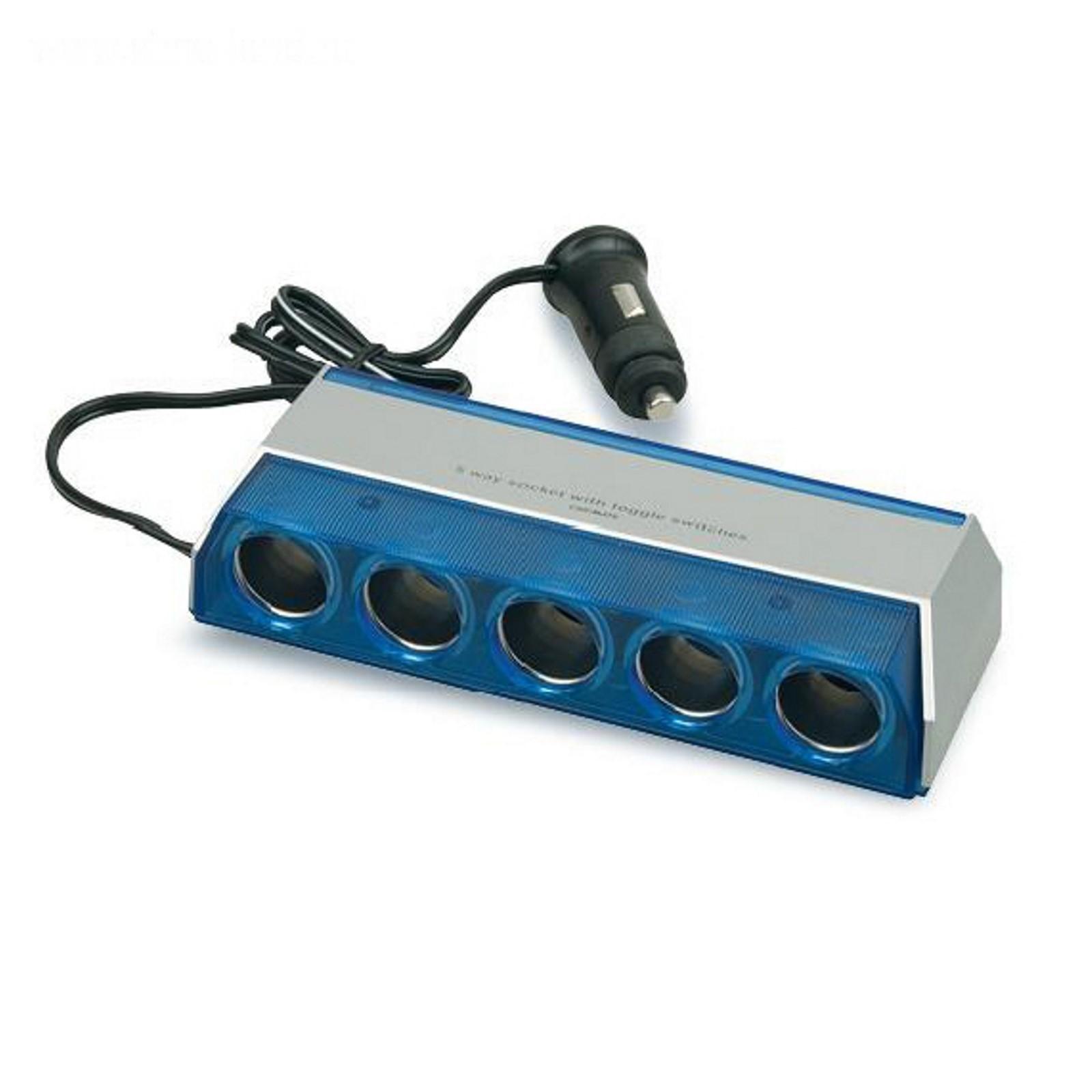 Разветвитель позволяет подключать до 5-х устройств одновременно в разъем прикуривателя через 5 собственных разъема прикуривателя. Каждое гнездо снабжено тумблером питания и может быть легко и быстро отключено. Крепкое надежное устройство в корпусе из огнестойкого пластика. Защита от короткого замыкания и перепадов напряжения. Возможность установки в любой части автомобиля, благодаря проводу длиной 1 метр. Работа в сетях с номинальным напряжением 12В и 24В. Универсален для любых автомобилей.