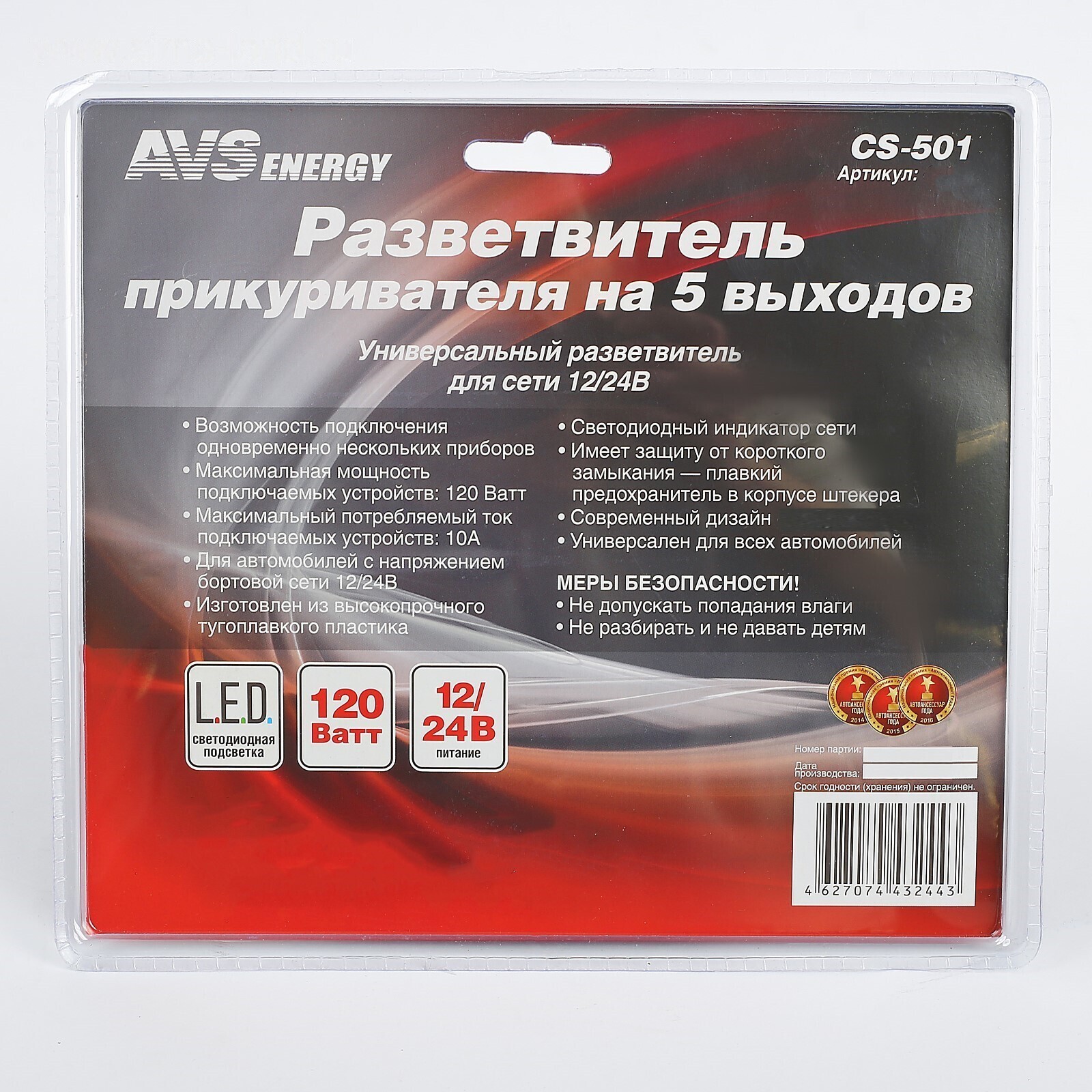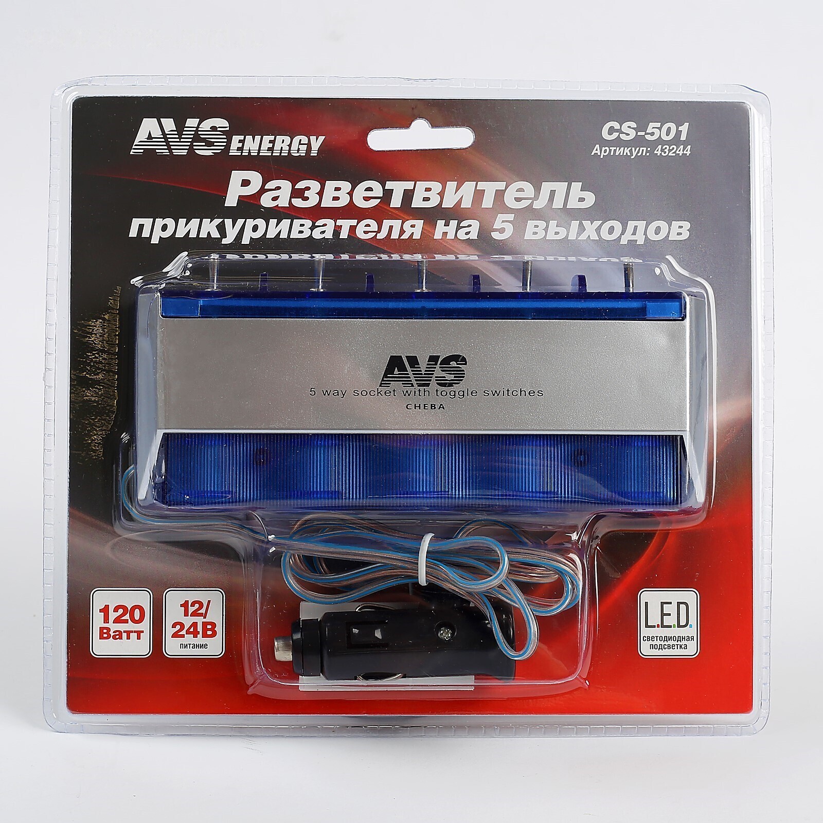Разветвитель прикуривателя AVS CS501, 12/24 В, 120 Вт, 5 выходов