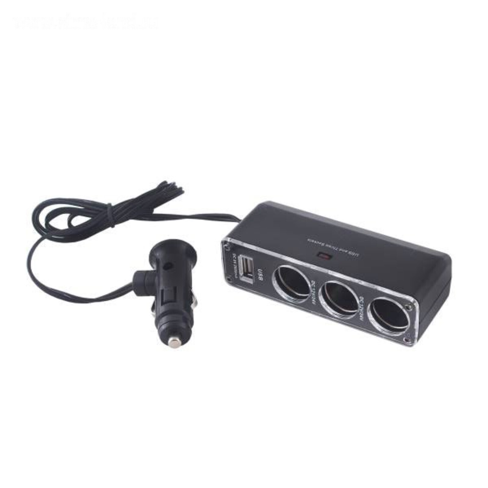 Разветвитель прикуривателя 3 гнезда + USB Skyway черный предох. 5А, USB 2000mA S02301024, S02301024