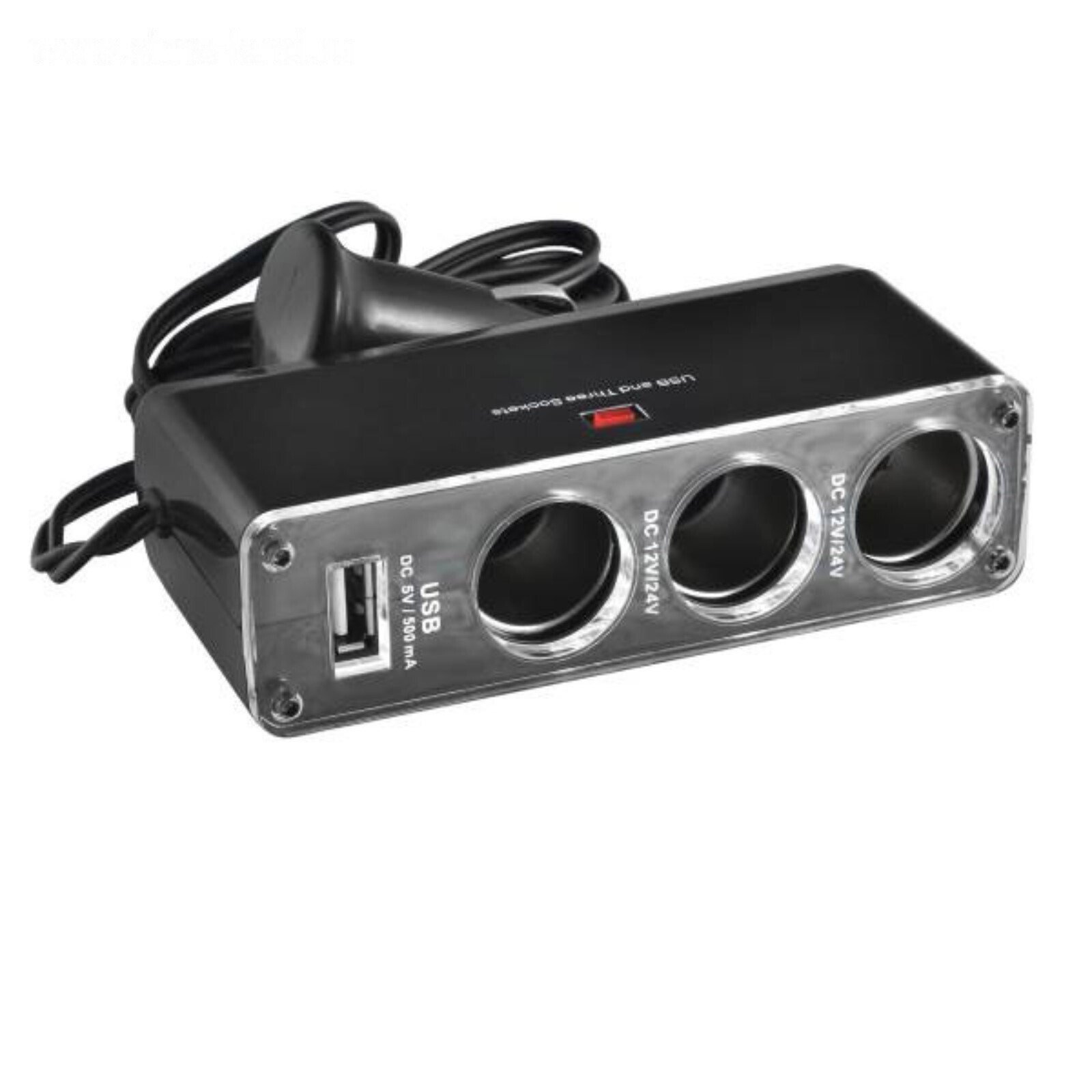 Разветвитель прикуривателя 3 гнезда + USB Skyway черный, предох. 5А, USB 1A S02301008, S02301008