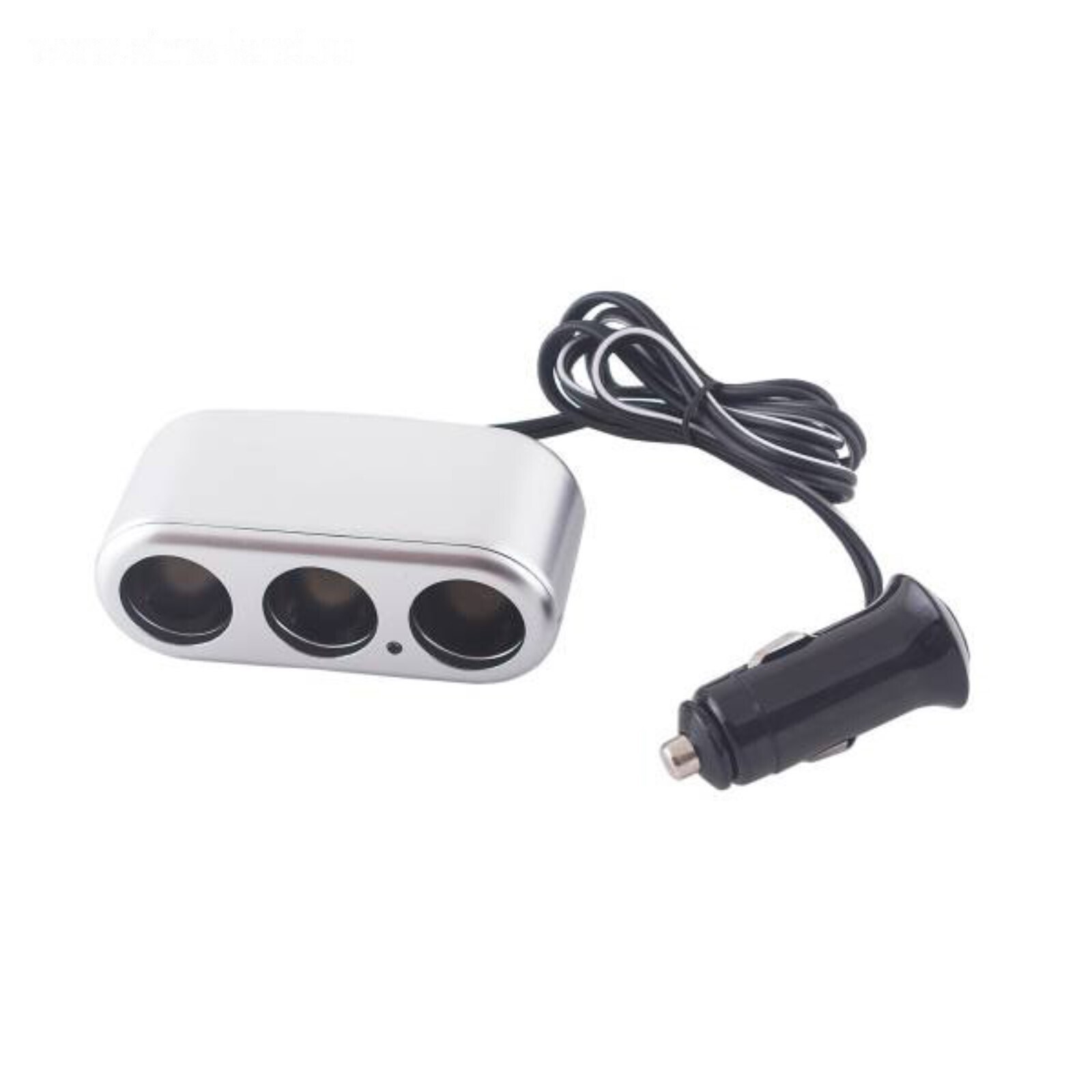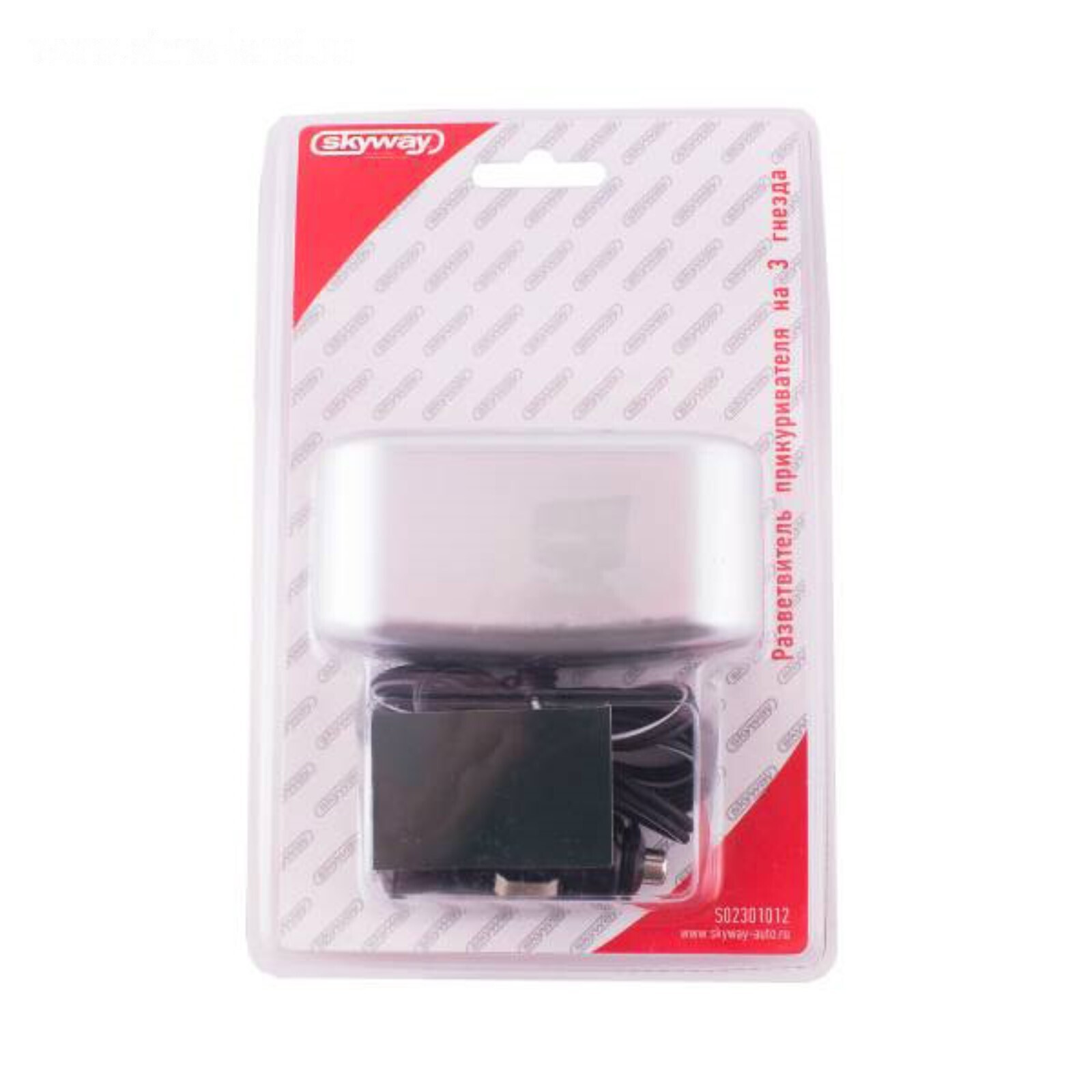 Разветвитель прикуривателя 3 гнезда Skyway серебристый, предохранитель 10А, S02301025