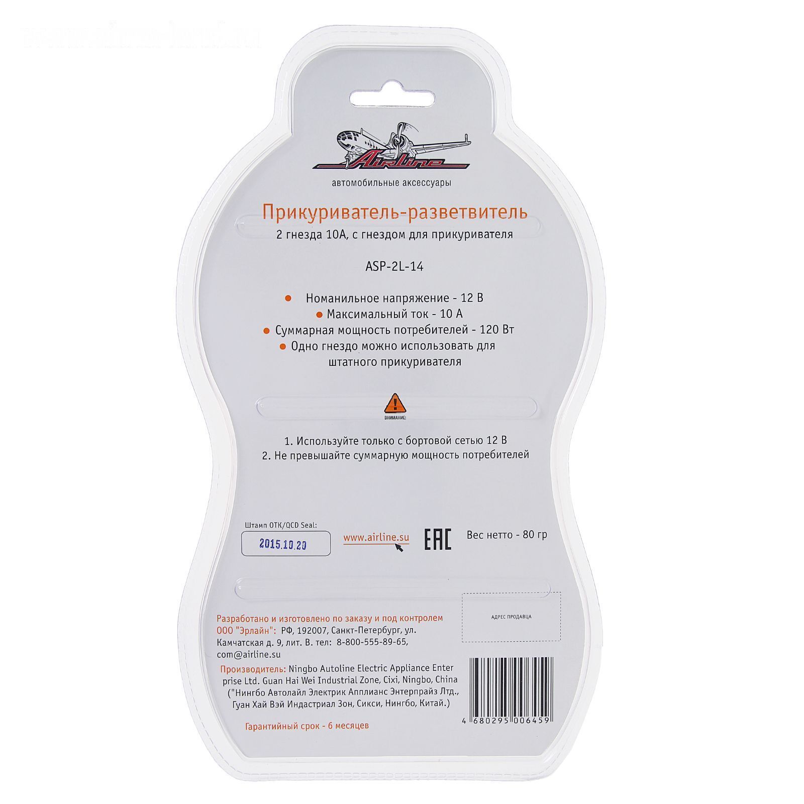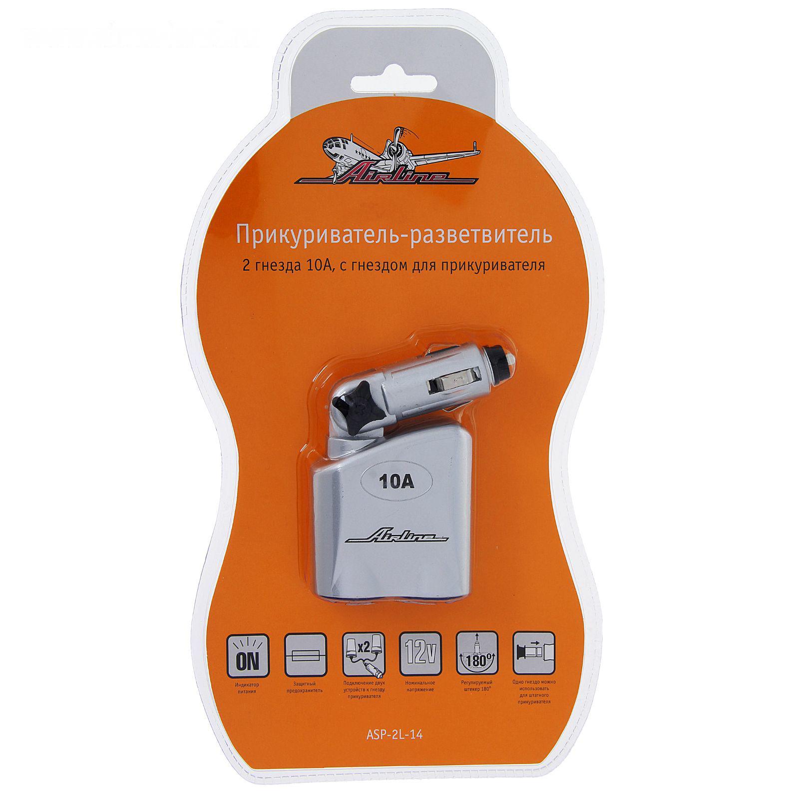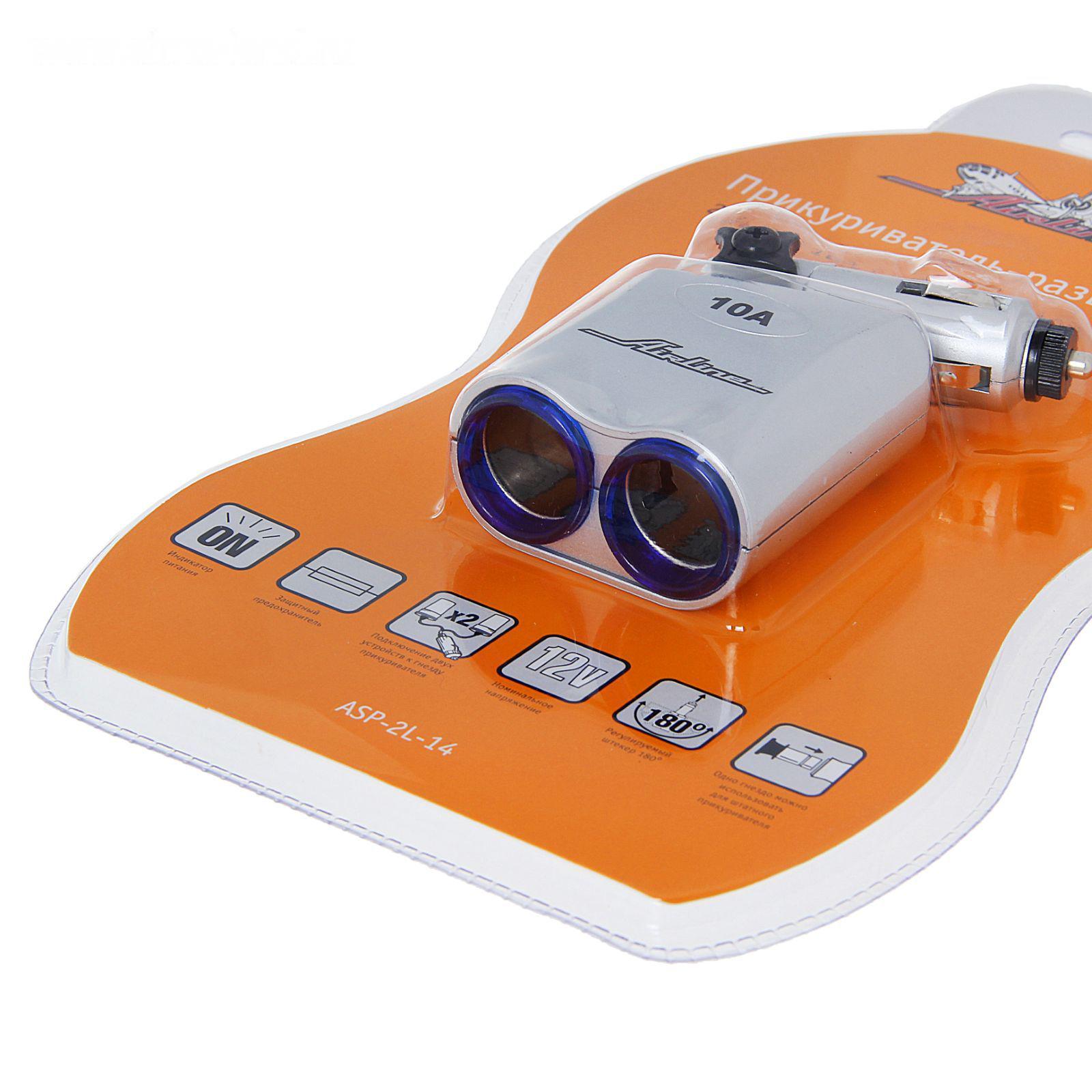 Прикуриватель-разветвитель, на 2 гнезда, 10 А, с гнездом для прикуривателя, до 120Вт.