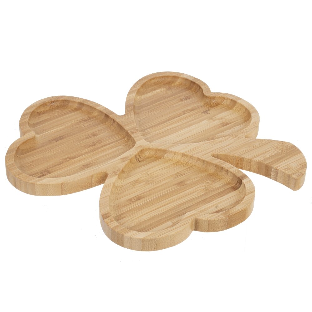 Деревянная менажница, выполеннная в форме цветка, состоит из трех секций, каждая из которых достаточно вместительна. Приподнесите для своих гостей пирожные или фрукты на этой изящной и привлекательной менажнице. Такая менажница станет прекрасным дополнением к праздничному столу.