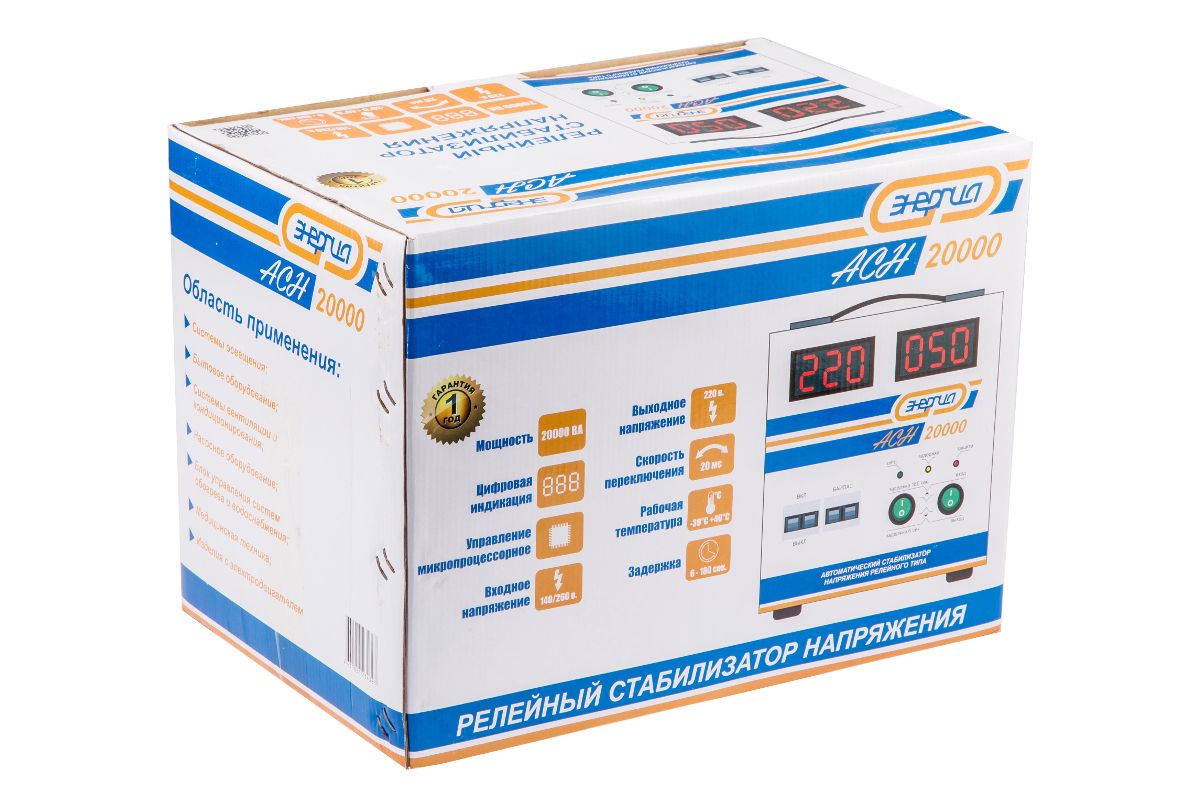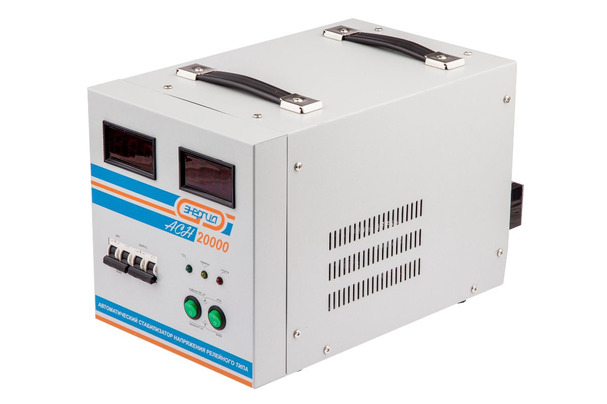 Однофазный релейный стабилизатор напряжения Энергия АСН-20 000 с цифр. дисплеем 20 000 ВА предназначен для защиты техники от повышенного или пониженного напряжения в электрической сети.