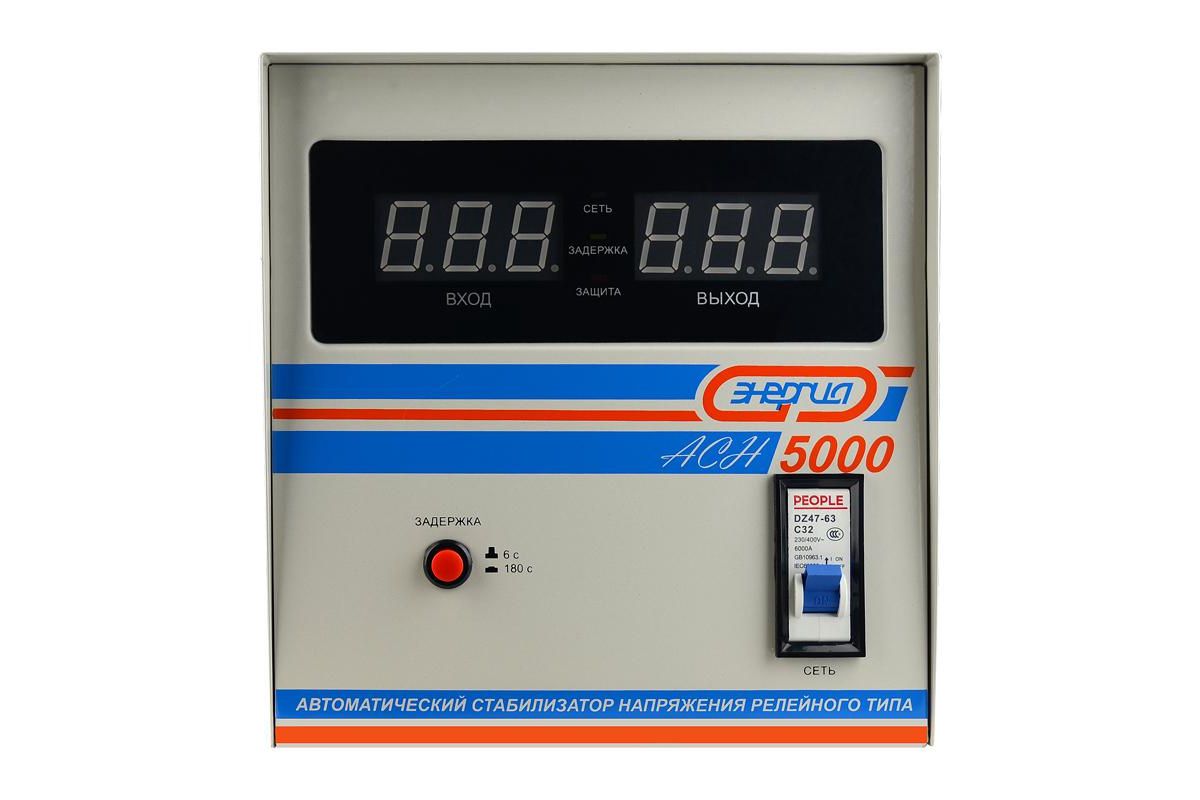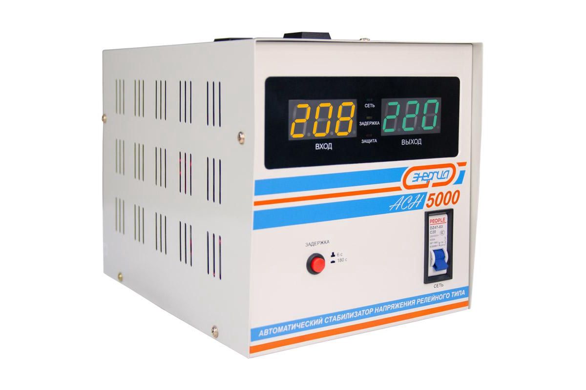 Однофазный релейный стабилизатор напряжения Энергия АСН-5000 с цифр. дисплеем 5000 ВА предназначен для защиты техники от повышенного или пониженного напряжения в электрической сети.