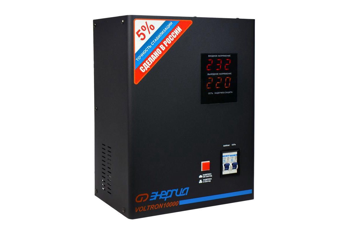 ''Однофазный релейный стабилизатор напряжения Энергия Voltron 10000(5%) предназначен для защиты техники от повышенного или пониженного напряжения в электрической сети.