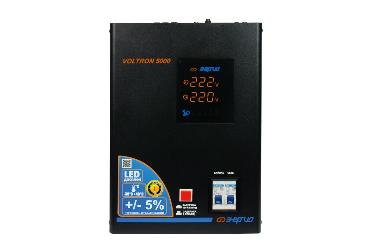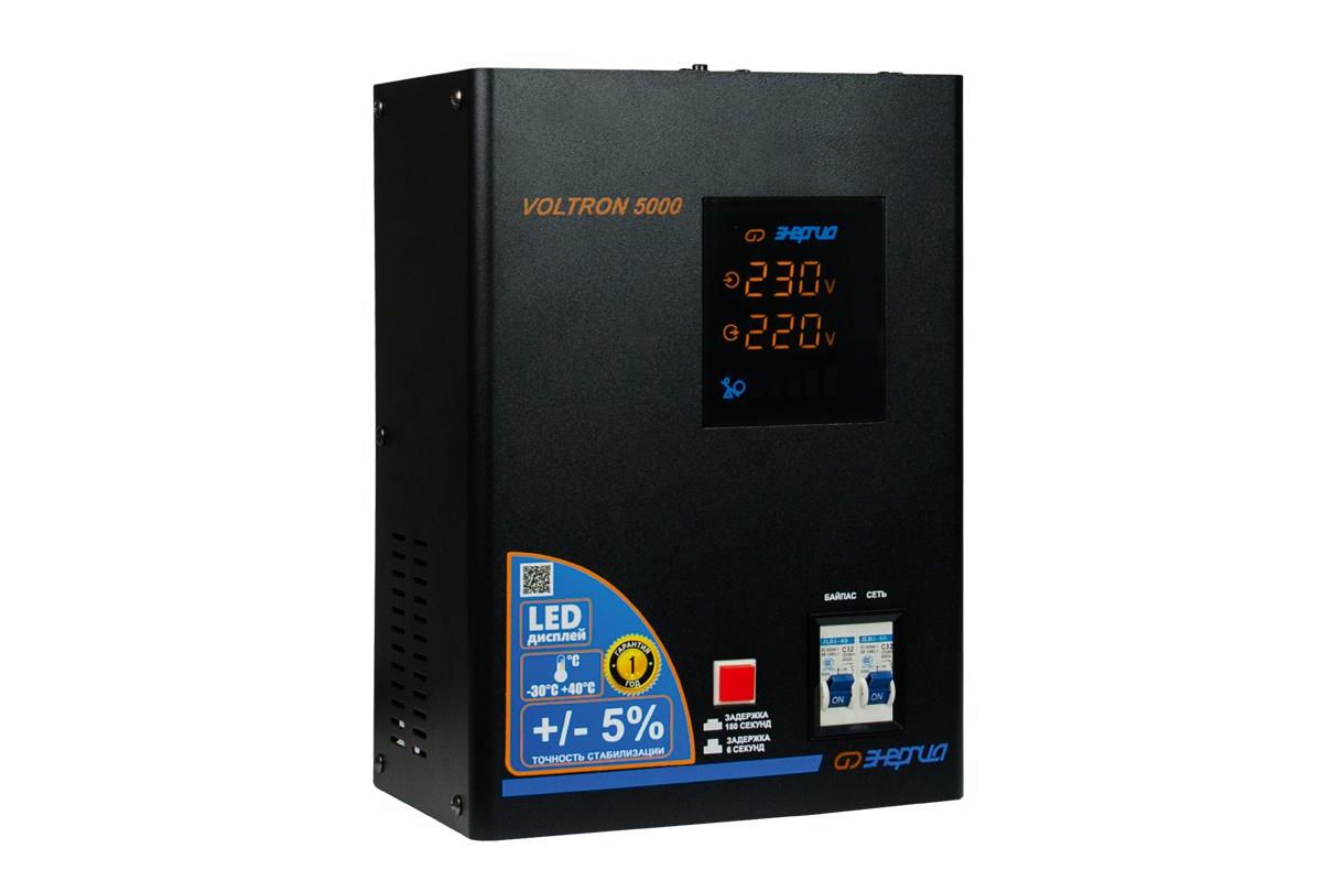 Однофазный релейный стабилизатор напряжения Энергия Voltron 5000(5%) предназначен для защиты техники от повышенного или пониженного напряжения в электрической сети.
