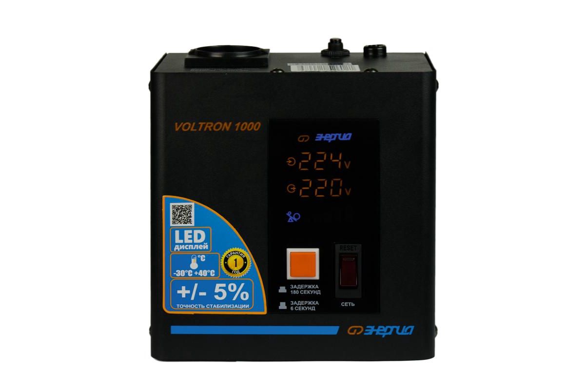 Однофазный релейный стабилизатор напряжения Энергия Voltron 1000(5%) предназначен для защиты техники от повышенного или пониженного напряжения в электрической сети.