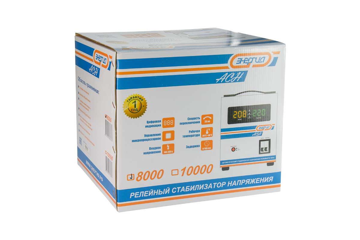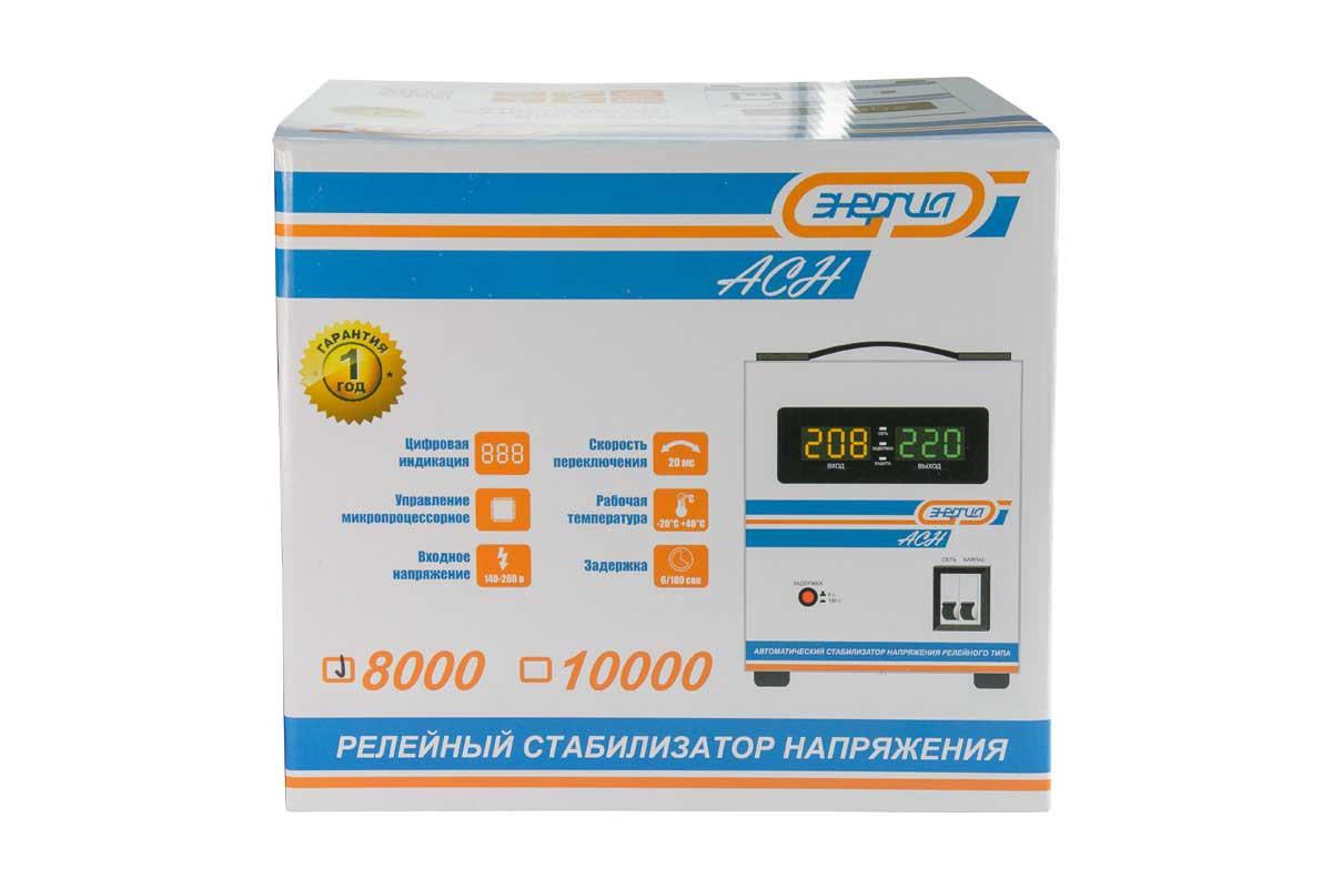 Однофазный релейный стабилизатор напряжения Энергия АСН-8 000 с цифр. дисплеем 8 000 ВА предназначен для защиты техники от повышенного или пониженного напряжения в электрической сети.