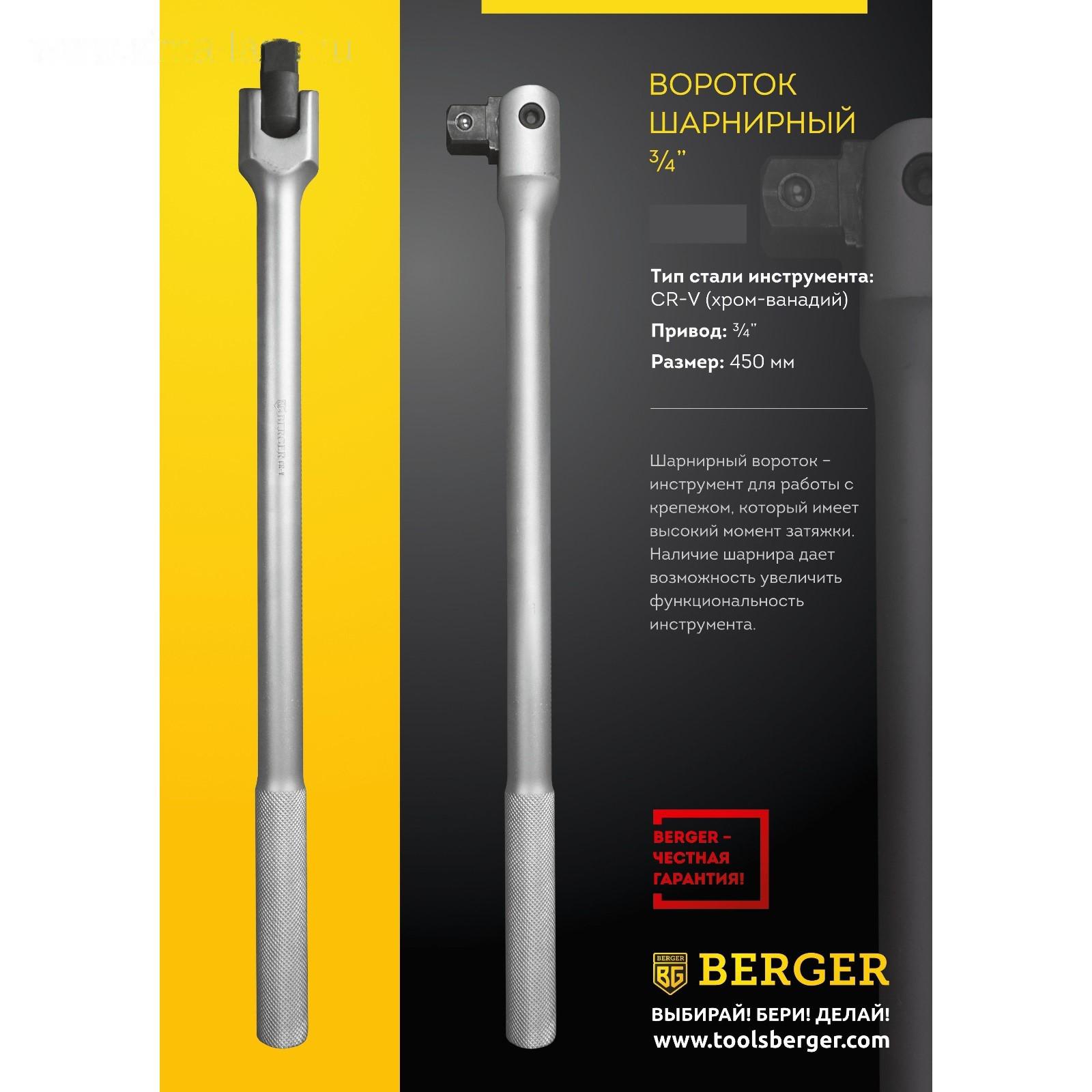 Вороток шарнирный BERGER BG2109, 500 мм, 3/4"