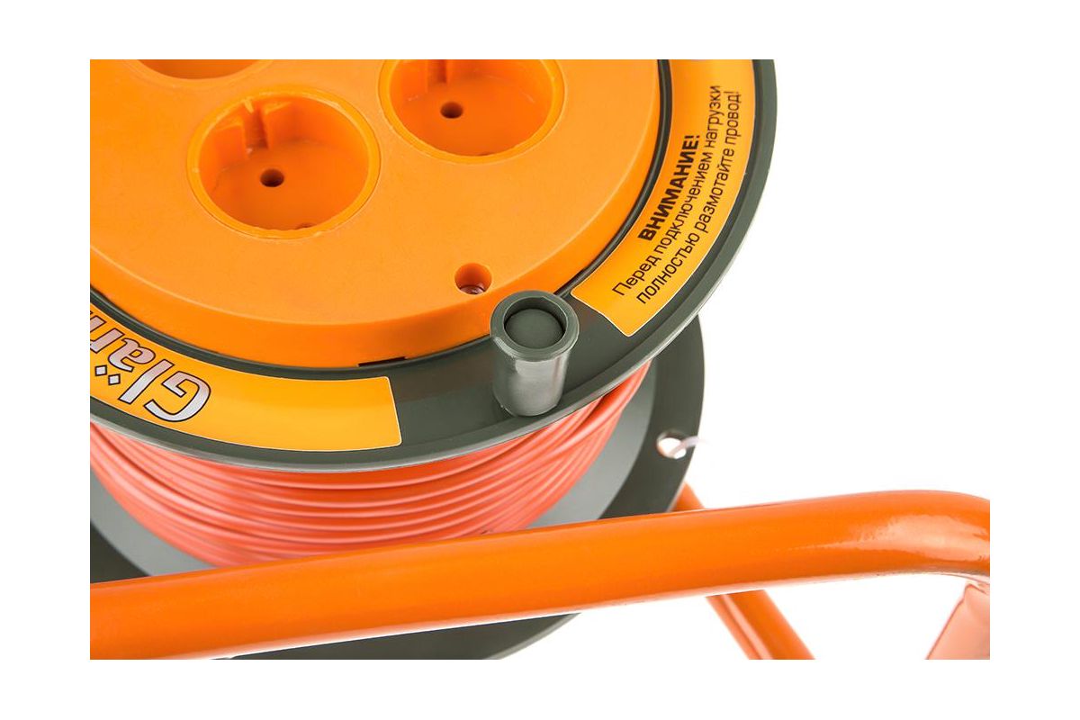 Удлинитель на катушке GLANZEN ЕВ-30-002 30м 2х0.75мм 6А 1300Вт, 4 розетки