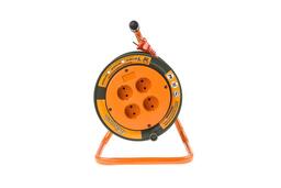 Удлинитель применяется совместно с электрическими приборами, которые находятся на удалении от основного источника сети. Изделие состоит из пластиковой катушки с четырьмя розетками. Оснащен устойчивой опорой.