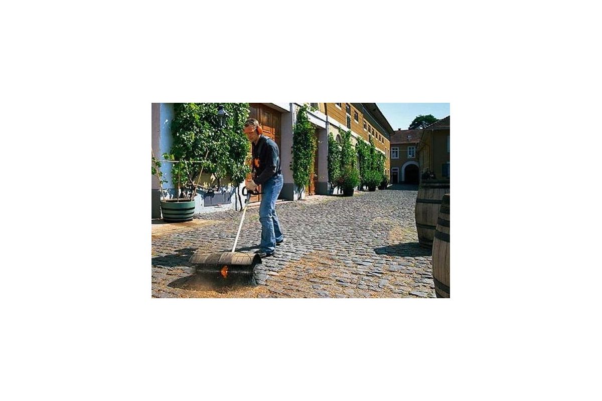 Подметальная щётка KB-KM предназначена для тщательной очистки поверхностей с глубокими пазами или неровных поверхностей из природного камня от крупной грязи или утоптанной земли. Разрешается использовать с любыми базовыми двигателями с круговой рукояткой (R). Жесткая щетина устройства легко и быстро расчистит неровные поверхности с щелями и канавками от втоптанной земли и грязи. Прибор идеально подходит для ухода за мощеными дорожками в саду или около дома. Защита оператора во время работы обеспечивается специальным щитком и встречным вращением щетки.