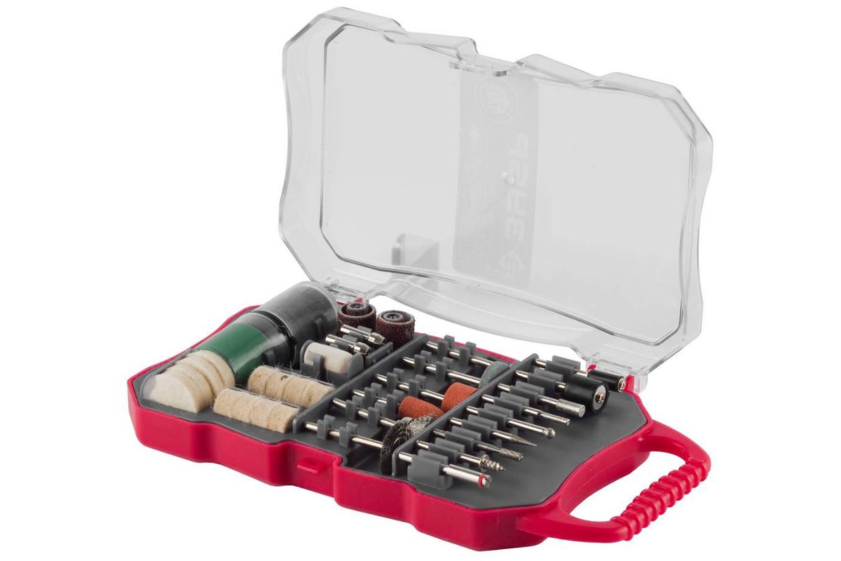 Набор содержит мини-насадки для гравировальных машин. Данные насадки применяются для чистовой обработки различных материалов. В набор входят предметы для выполнения разных операций, например, шлифовки, полировки, резки. Зернистость и форма насадок также различны. Благодаря этому можно выполнять работы любой сложности и даже в труднодоступных местах.