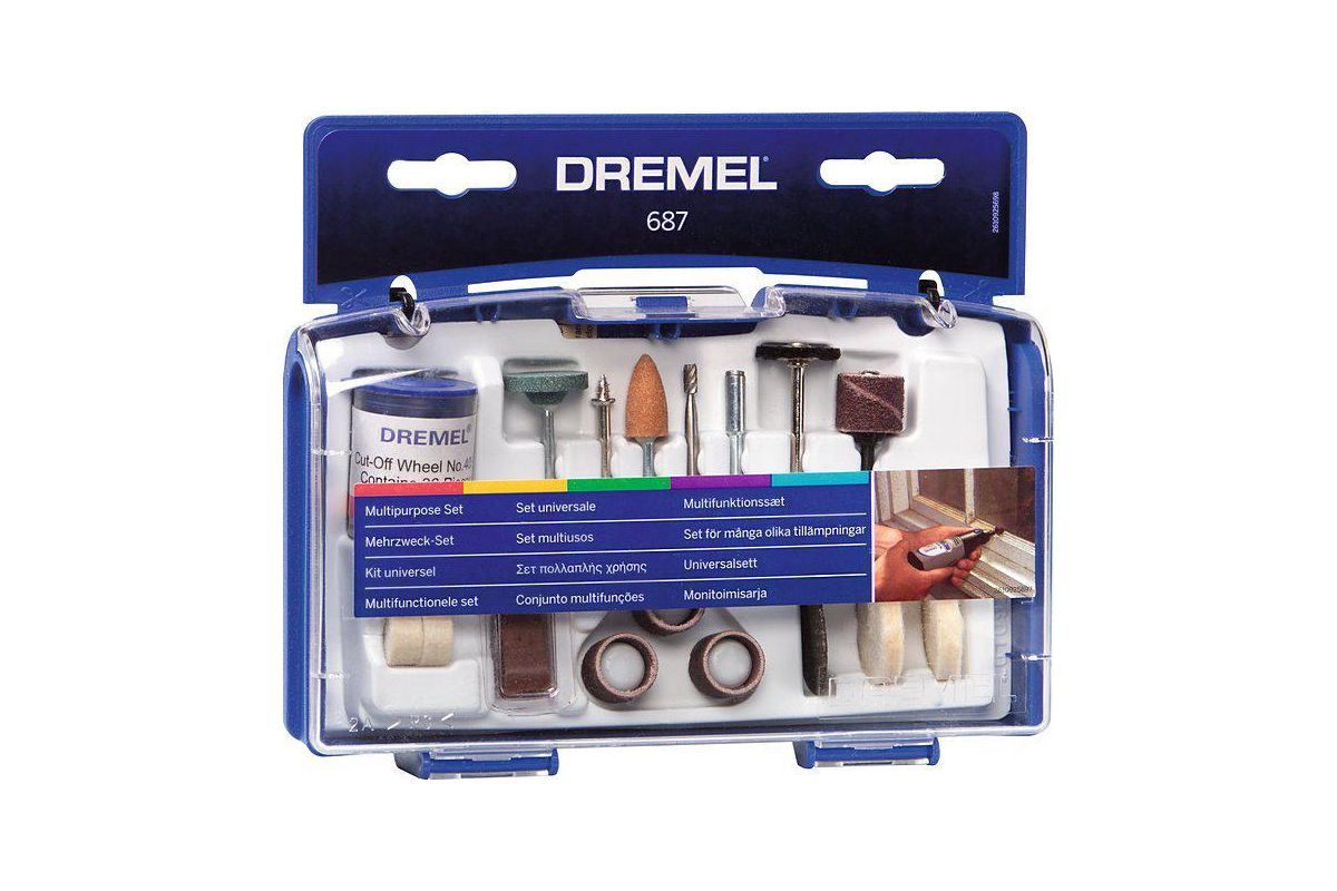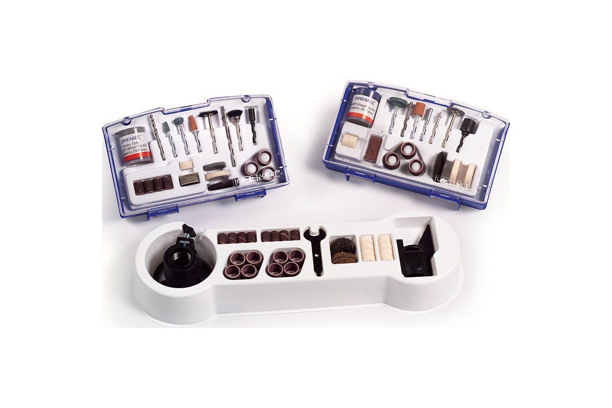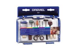 Набор для дрели DREMEL 687 – это комплект наиболее часто используемых насадок. Принадлежности хранятся в удобном пластиковом кейсе. Вынимаемый поддон для насадок и три разделителя обеспечивают максимально комфортное хранение. Брошюра DREMEL Quick Start объясняет назначение каждой насадки.