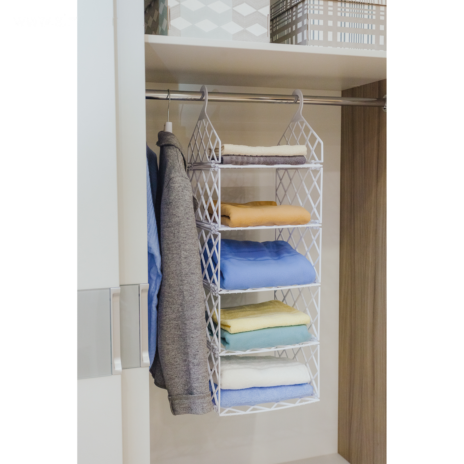 Удобный и качественный, подвесной органайзер поможет вам сэкономить место в шкафу и избавиться от беспорядка. В нем можно хранить небольшие вещи в сложенном виде, обувь, нижнее белье и многое другое.
