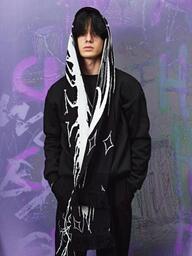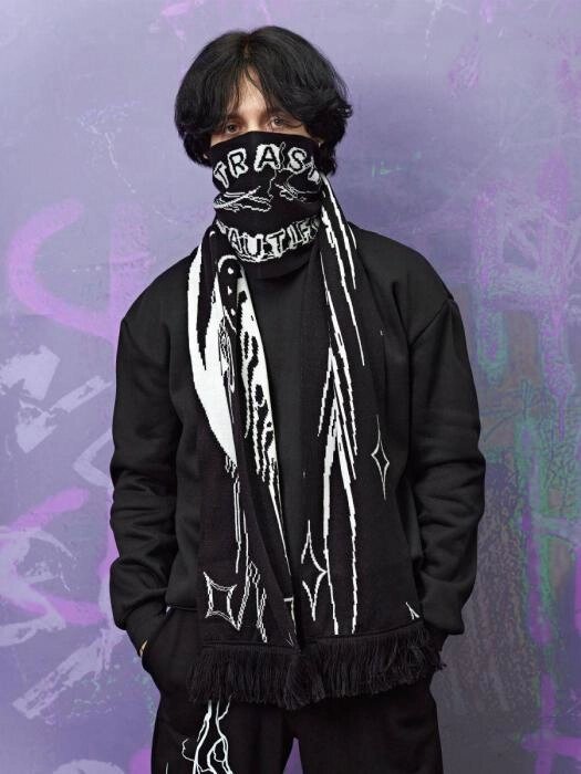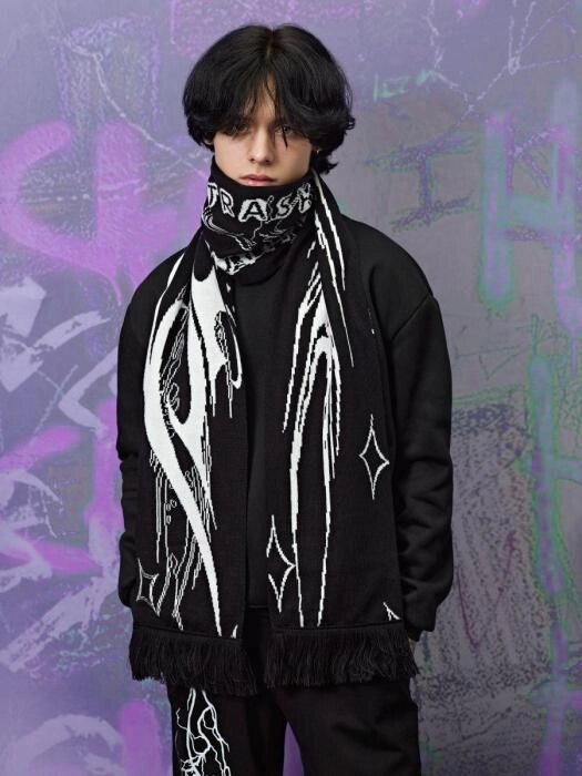 Шарф мужской зимний черный дрейн теплый длинный молодежный вязаный