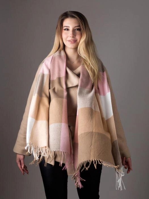 Шарф палантин женский теплый длинный кашемировый платок шарфик в клетку