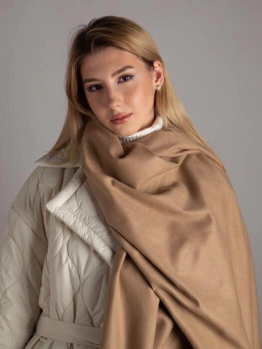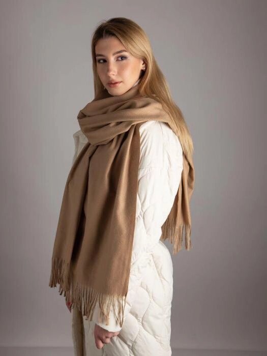 Шарф палантин женский теплый длинный кашемировый платок шарфик бежевый