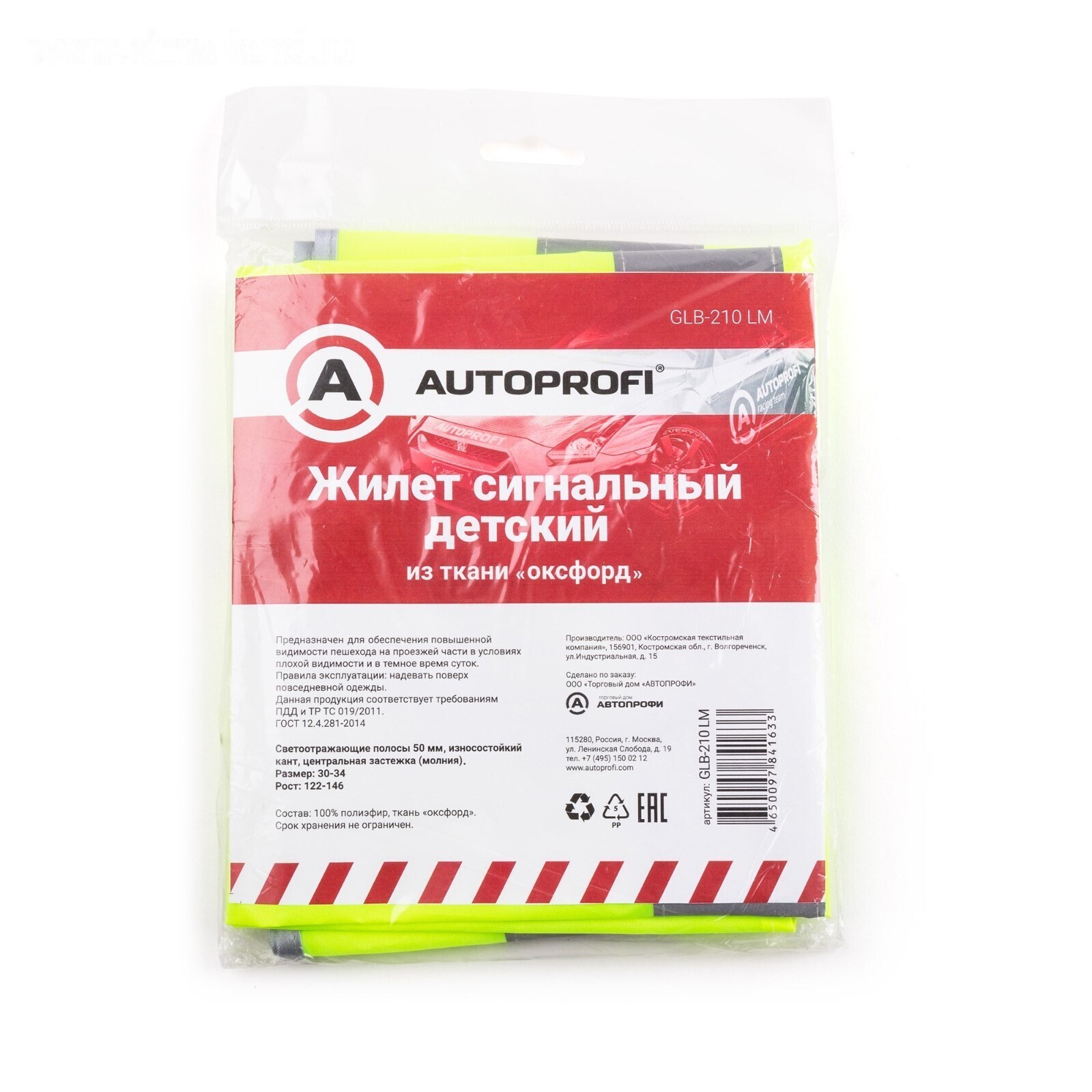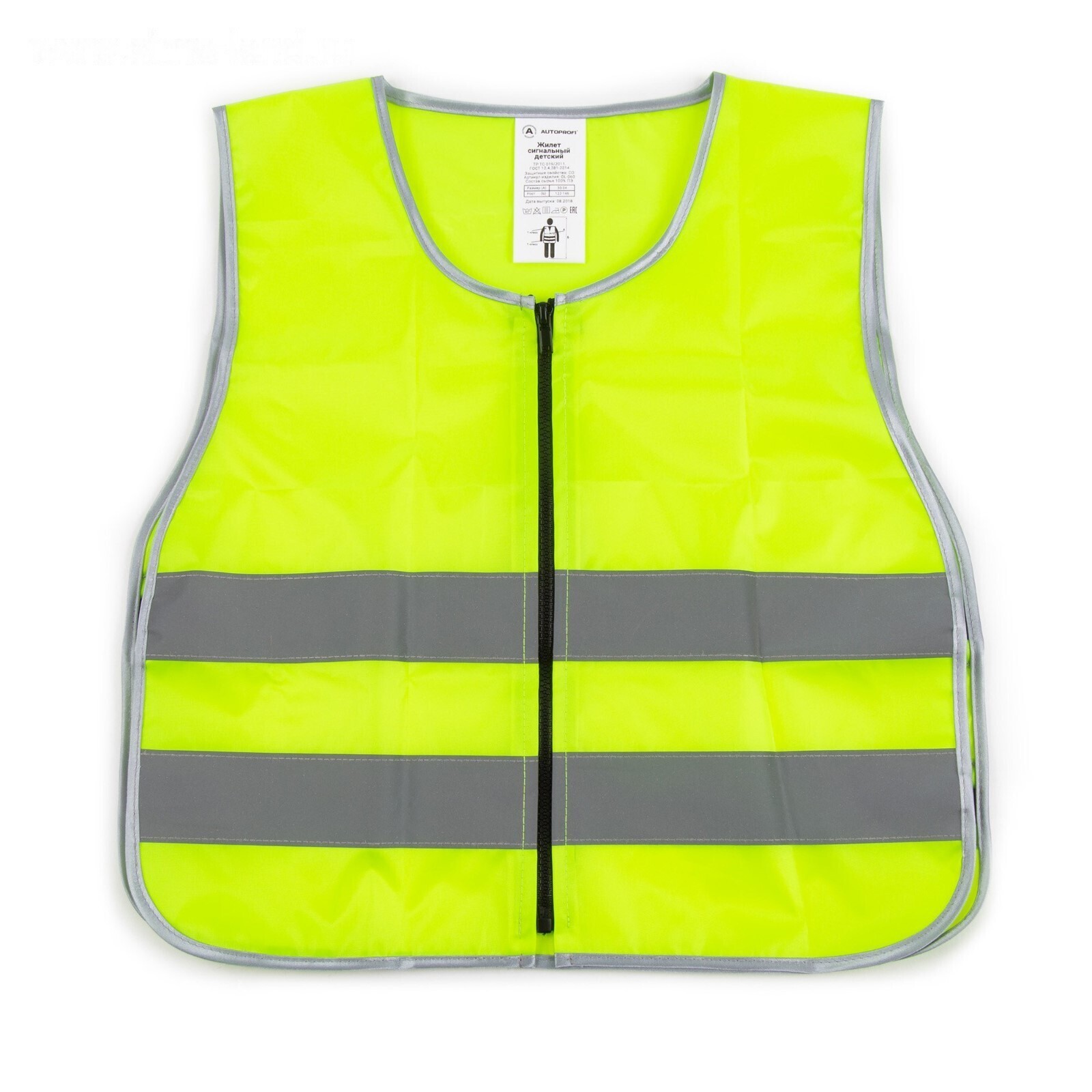 Жилет светоотражающий детский AUTOPROFI, молния, размер 30-34, 7-12 лет, оксфорд 210D, лайм, ГОСТ 12.4.281-2014