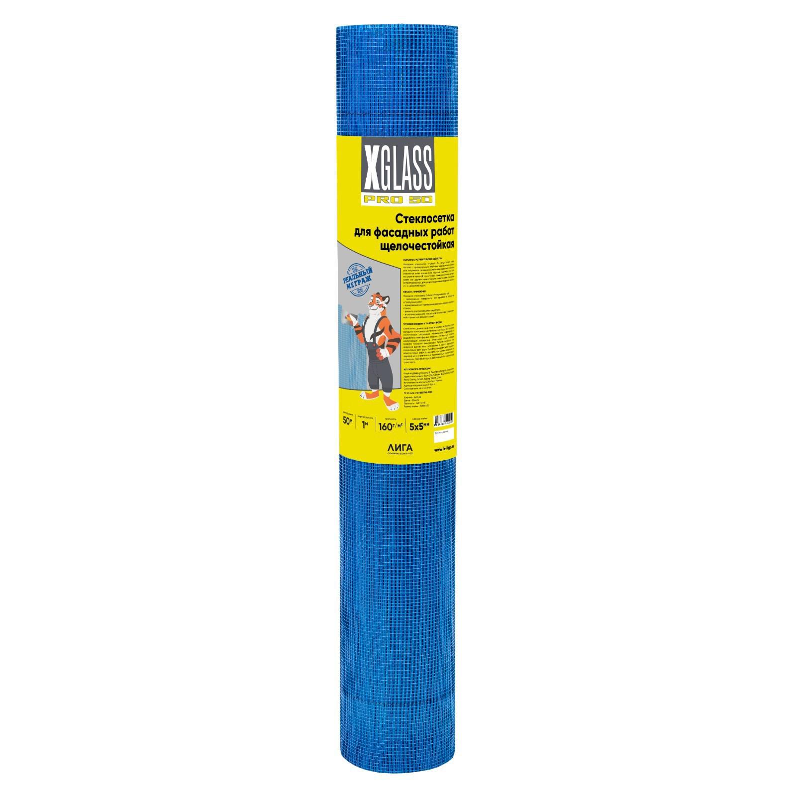 Сетка стеклотканевая фасадная XGlass Pro 50 5х5 мм, 1х50 м, 160 гр/м2,