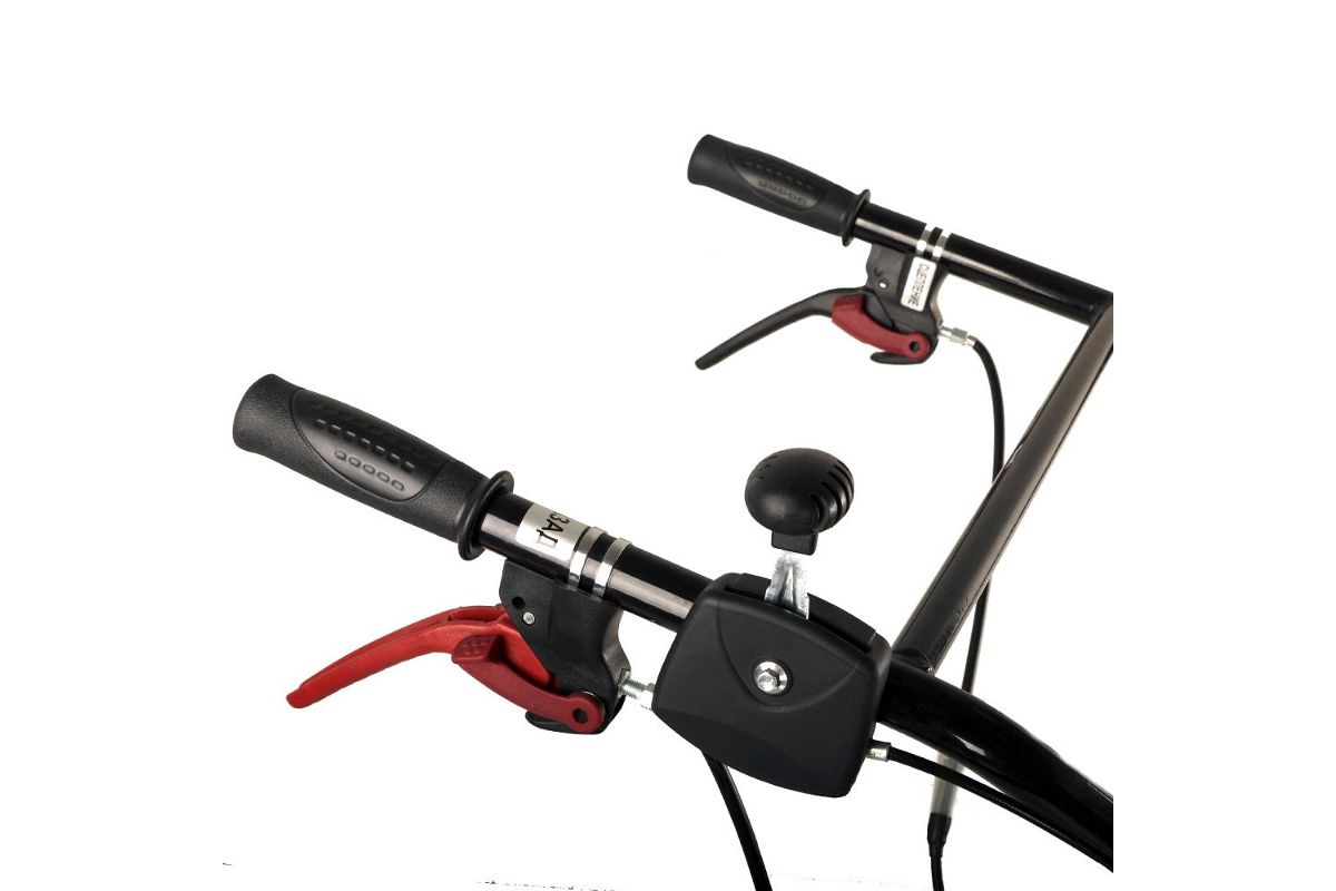 Впереди расположено сервисное направляющее колесо. Культиватором удобно маневрировать.