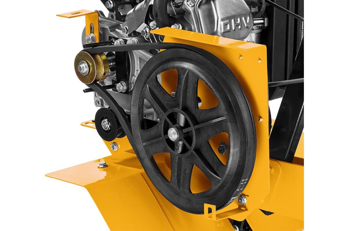 - Культиватор оснащен транспортировочным колесом для легкости перемещения по участку;