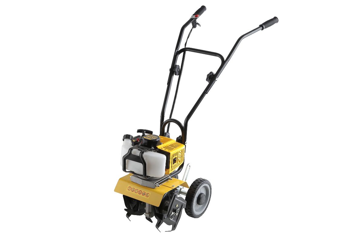 Бензокультиватор CHAMPION GC243 отлично функционирует в любых положениях за счет повышенных оборотов силовой установки. Двухтактный мотор обеспечивает высокую производительность при малом весе устройства. Максимально возможная глубина обработки почвы соответствует длине штыка стандартной лопаты. Ширина полосы в 240 мм удобна при работе культиватором на грядках. Он оснащен двумя широкими комфортными рукоятками, которые легко складываются для дальнейшего компактного хранения бензокультиватора.
